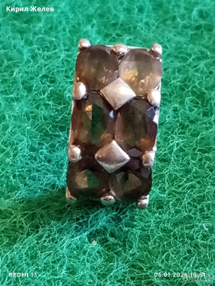 Сребърен пръстен дизайн тип Банда с Опушен кварц ювелирна изработка 51832