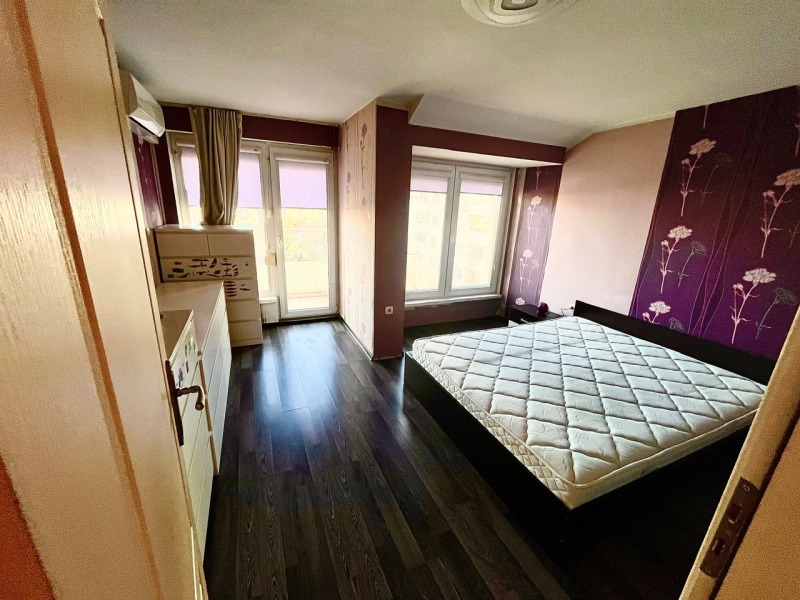 Състои от: хол с кухненски бокс, спалня, детска стая, баня с тоалента, килер и две тераси. Функционално обзаведен, разполага с всички необходими електоуреди. Отоплението е решено с климатици, налични във всяка стая. От прозорците на апартамента се разкрива красива гледка към Стара планина. В стойността на наема влиза и ползването на мазе.