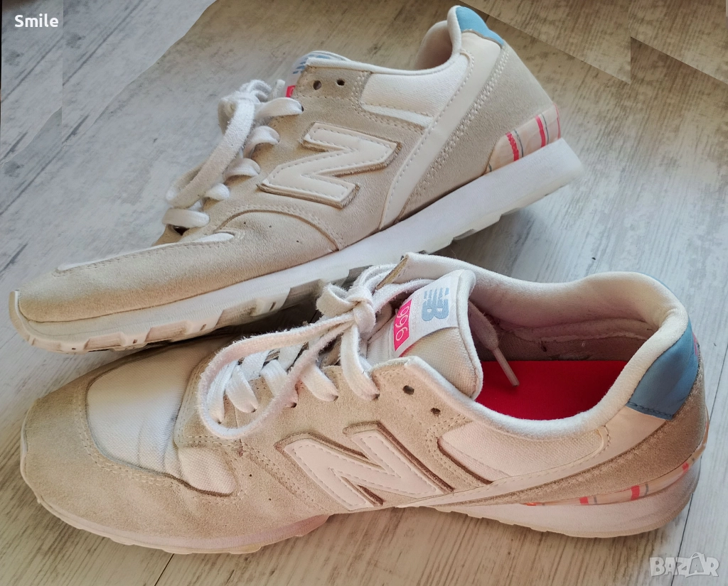 Оригинални ежедневни дамски маратонки New Balance 996. В отлично състояние, нормални следи от употреба. Номер 40.5. Изработени от висококачествена кожа - велур и текстил за издръжливост и комфорт. Отлично качество, предложено от марката. Много удобни за спорт и ежедневието. Цвят бежов. Изпращам с "Еконт" или със "Спиди".