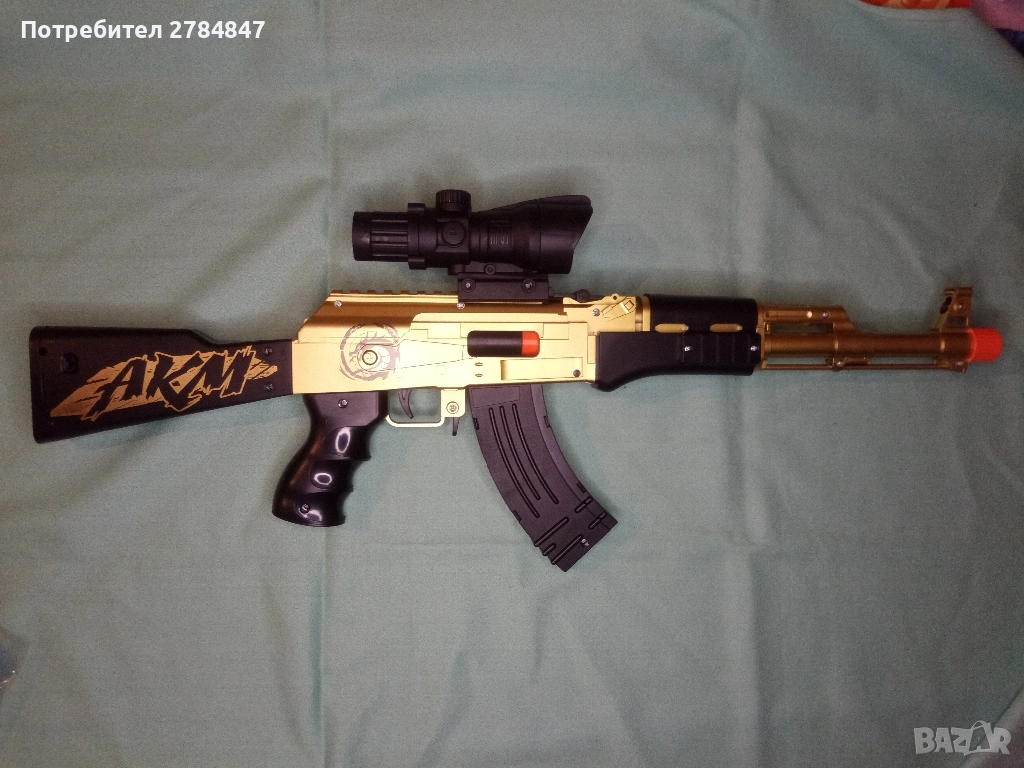 Детска играчка пушка АКМ с гилзи и гумени патрони. Дължина 63 см.