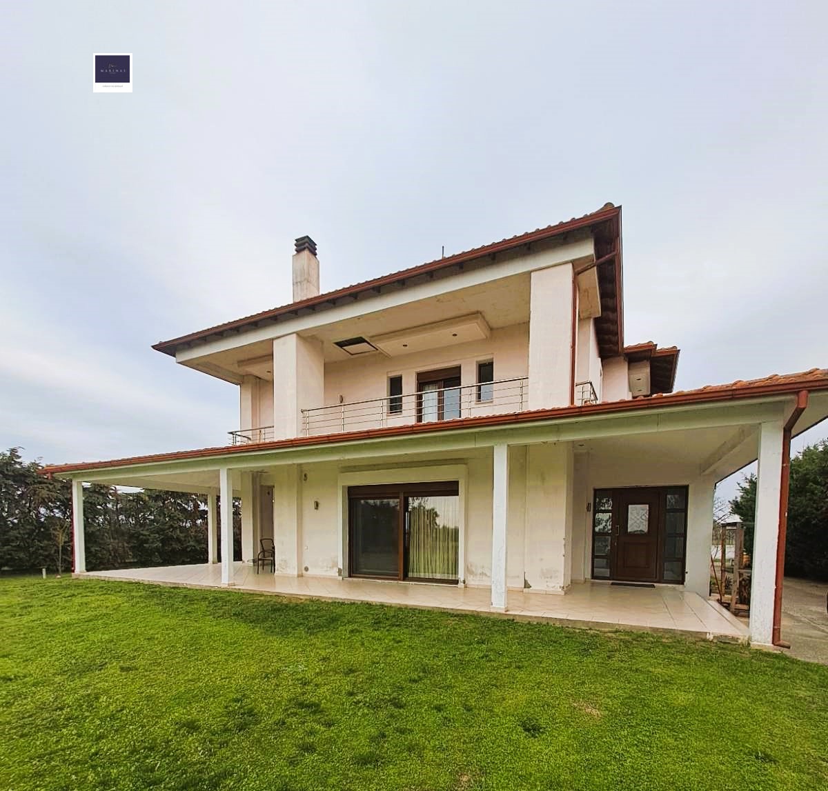 Къщата е разположена в тиха и озеленена зона с неограничена панорамна гледка към морето и планината Олимп, само на 5 минути с кола от пясъчен плаж.