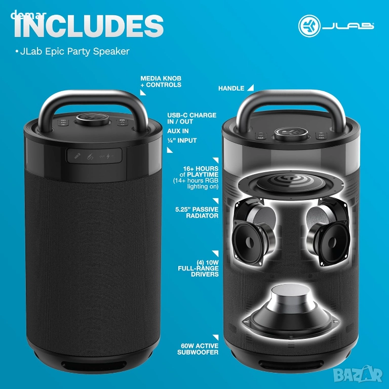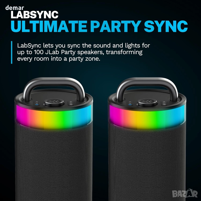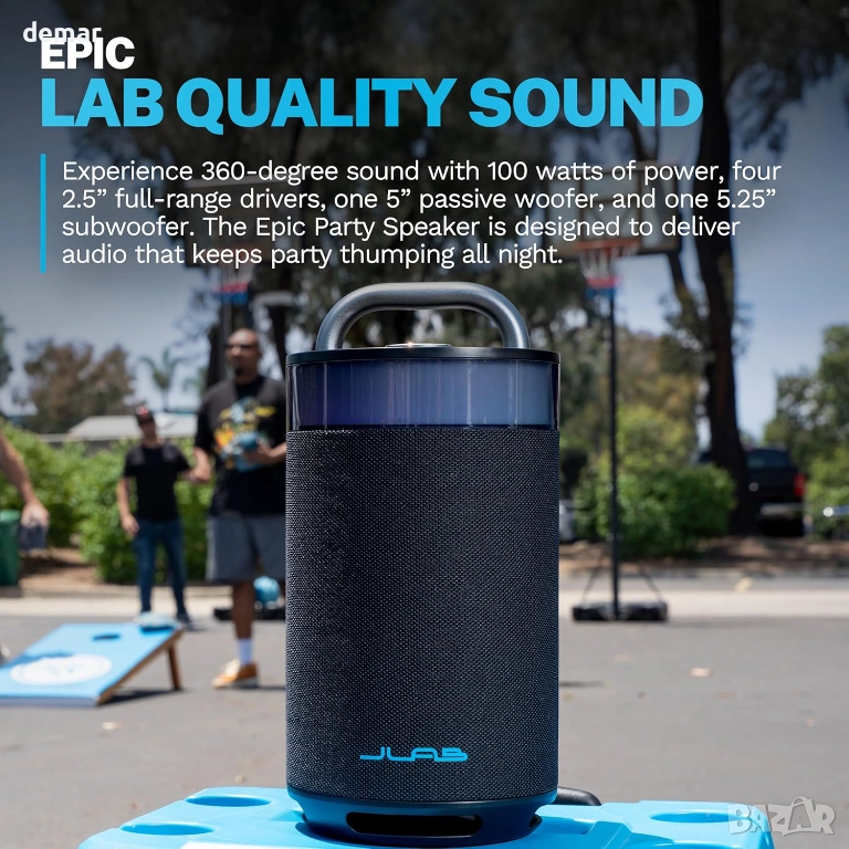 JLab Epic Party Преносим Bluetooth високоговорител, 100W, RGB светлини