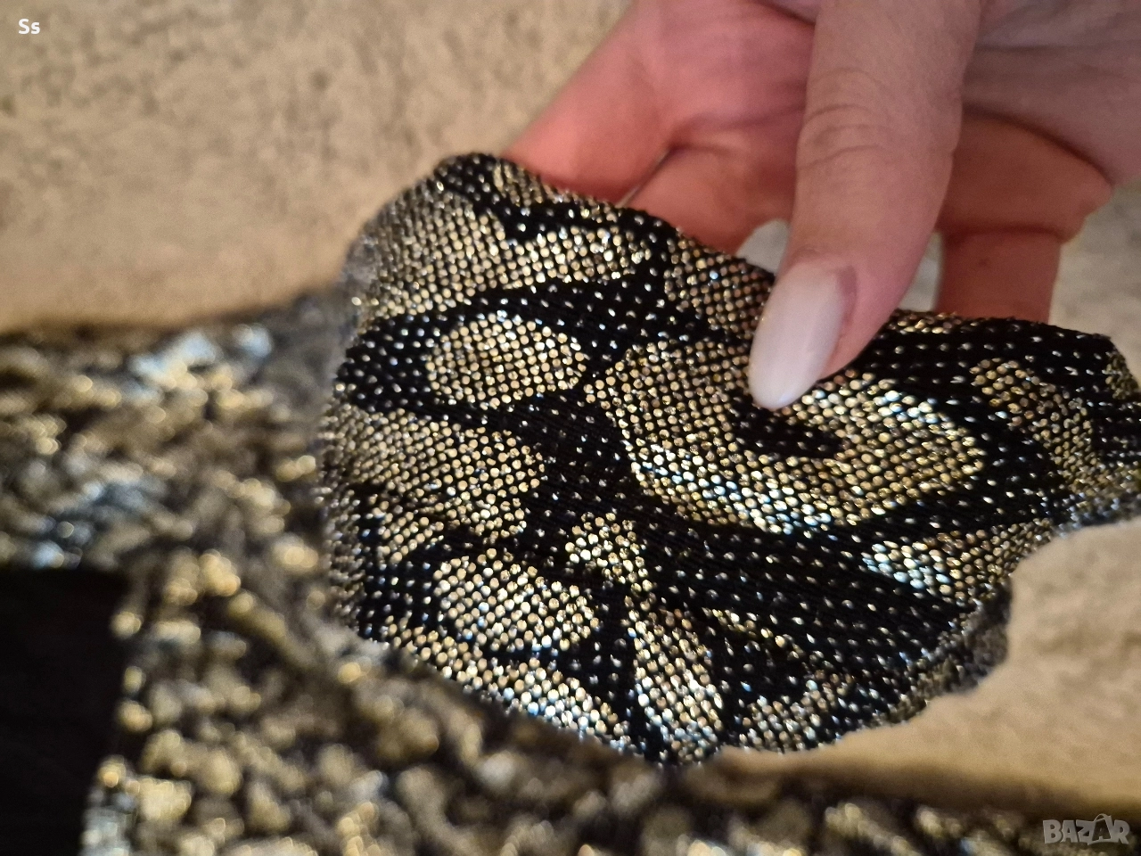 Роклята е нова, няма забележки. Отговаря на размер S. Не е много еластична, с цип от зад и тип чокър на шията. От много мек и красив плат. Високо качество.