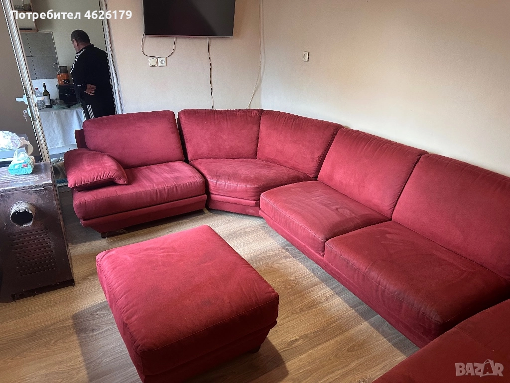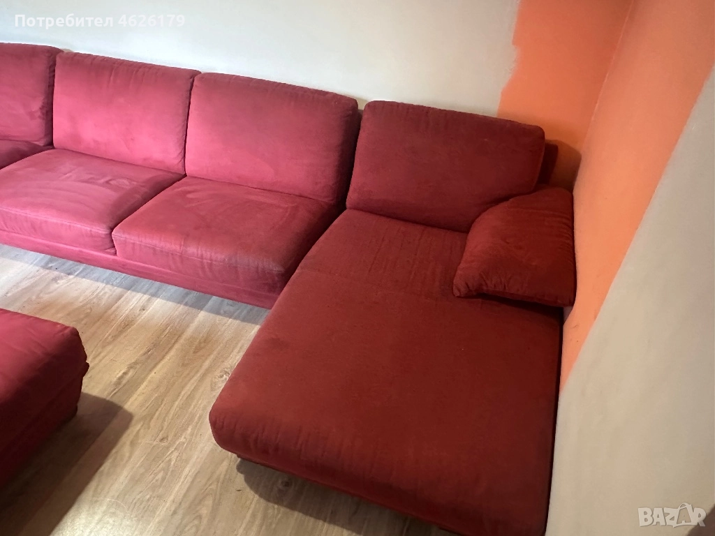 Продавам голям ъглов диван с табуретка, внос от Нидерландия.