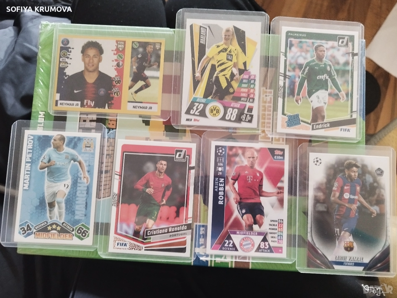 Продавам най - различни стикери и карти на футболисти, всичките в сравнително добро състояние. За другите цени моля пишете на лично Haaland, Mbappe, Cristiano Ronaldo, Ronaldo Nazario, HRISTO Stoichkov, LIONEL MESSI, Jude bellingham, Yamal