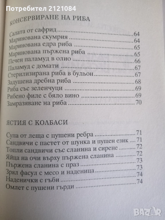 Консервиране на птиче месо; Консервиране на риба; Ястия с колбаси