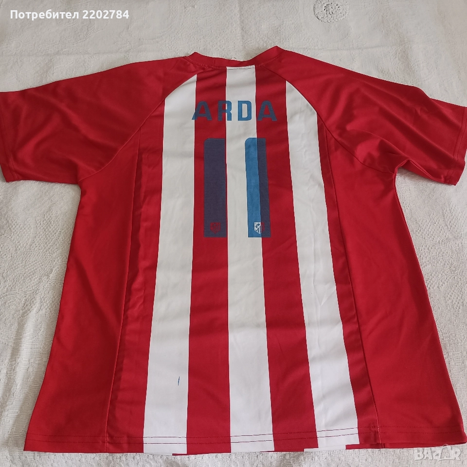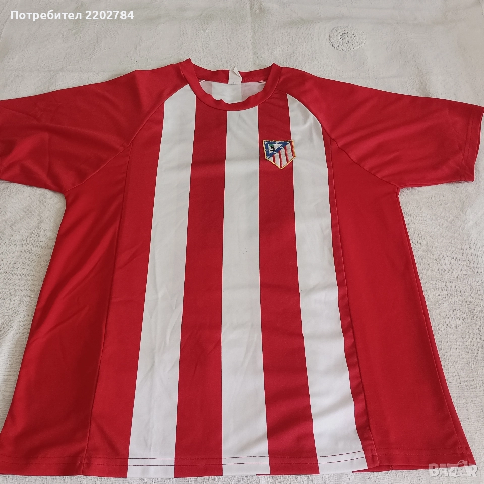Снимки 14 и 15 - Атлетико Мадрид.Гръдна обиколка 110см, дължина 75см.Без забележки.Синята точица на гърба е от латекса на номера.