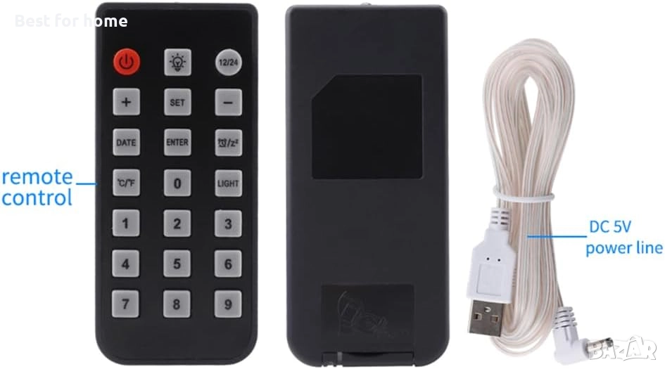 Захранване: USB кабел (включен в комплекта). Има батерия за запаметяване на настройките при спиране на тока.