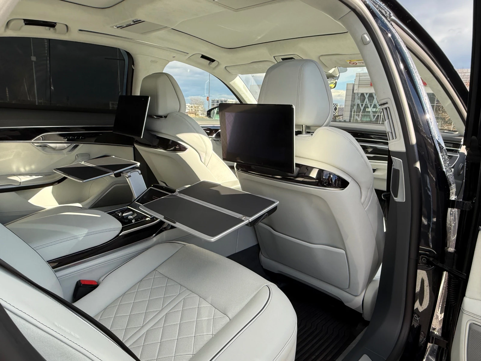 Състояние на нов автомобил. Цена като нов 189000 евро . Възможно най високото ниво на оборудване. Пълна сервизна история в официален сервиз на марката. Без удари и пребоядисвани детайли. В гаранция до 04. 2026. Всички екстри за които можете и не можете да се сетите. Автомобила е с два комплекта нови гуми (зимни-hankook и летни- Michelin pilot sport 5s) DT8 8-cylinder SI engine 4. 0 l/338 kW biturbo, FSI, homogeneous base engine is T1M EP1 With noise cancellation (ANC Active Noise Cancellation) FT3 Intelligent park assist G1G 8-speed automatic transmission for four-wheel drive GH2 Rear differential Torque Vectoring GT1 Decorative aluminum inserts GZ2 Door power latching I8Z Top infotainment system Premium (MIB3) IT3 With Connect package 3 IU1 With Connect package 1 IW3 Emergency call service and roadside assistance call IX1 SI engine J2D Battery 380 A (68 Ah) JE3 Connect package Plus 13 JX1 With front cross traffic assist K8L Notchback - long wheelbase KA6 With front and rear view camera system and two side cameras KK3 Kaltemittel R1234yf KS1 Head-up displays N5D Seat trim covers in Valcona leather PAH Extended decorative elements in Black piano lacquer PC6 Brake calipers painted in Black (19-inch ECE) PCJ Assistance package Plus with park assist plus PDG Climate comfort/acoustic glazing PE1 Rear seat package, individual seats with continuous leather-covered center console PET PS2 Audi design selection Pastel Silver PL7 Alcantara package, specific color Comfort individual contour seat package in sports look Q0B Q57 DAB + TV with external CAS (pay TV) Q1D Sports front seats Tires 265/40 R20 104Y xl (torus sound absorber) QF7 Phone box, antenna function and wireless charging in the rear seat area, with receiver feature QI6 Service indicator 30 000 km or 2 years ( variable ) QL5 Dark tinted glass in rear seat area (Venus 35/Privacy) heat-reflecting glass (green) in front QQ2 Ambient Interor Lighting QR9 Mit Verkehrszeichenerkennung QW5 Central control unit T1M 8-cylinder SI engine 4. 0 l unit 0P2. A U5A Instrument cluster, km/h speedometer UF8 Electric interface for external use V0A Tires without specification of tire brand VC2 Garage door opener VH3 48-V electric system and active battery cooling VL1 Extended pedestrian protection WDC Technology package " Better Vision" 0TR Floor mats in front and rear, with wedge in rear 1G5 Space-saving spare wheel, same size (same rolling circumference) as original equipment tires 1PR Wheel bolts with theft protection and loose wheel warning 1T3 First aid kit with warning triangle 1U1 Folding table 1VJ Installation parts for eight-cylinder engine 1W2 Glove compartment cooling system 1Z2 Increase in initial standard fuel filling 1ZL Disc brakes in front 2EG Disc brakes in rear 2F1 Locking and starting systems 2K9 Reinforced bumpers 2KR Labels in English and German 2L3 Heated surfaces in front and rear 2MQ Suspension/shock absorption 2V9 2Z8 Fresh air intake and air ionizer Type sign and company logo 2ZM Leather-wrapped multi-function steering wheel 3B4 Child seat anchors for child seat system ISOFIX 3D6 Center console 3FU Large roof system 3NL Two single seats, power-adjustable 3PR Power seat adjustment for both front seats with memory feature 3Q3 Head restraints in rear 3X4 Load-through hatch 3Y8 Power-operated roll-up sunshade for rear window and for rear side windows 4A4 Seat heater for front and rear seats separately controlled 4BI Emission standard EU6 AP 4D2 Seat ventilation/massage seats in front and rear 4E7 Tailgate/trunk lid power closing 4F2 4KV Central locking system " Keyless Entry" 4GR Heated insulating glass windshield Side and rear windows with insulating glass 4UF Airbag on driver and front passenger side, without knee airbag, with front passenger airbag deactivation 4ZB Bright decorative trims 5N2 5TL 5XH 6C5 Folding grab handles at roof frame 5SL Left exterior mirror, aspherical Decorative inserts in piano lacquer Sun visors with mirror, illuminated 6A0 without fire extinguisher Side airbag in front and rear, with curtain airbag and interaction airbag in front and rear 6E3 Center armrest in front 6FB Body-colored exterior mirror housings 6I6 Lane keeping system plus semi-automatic vehicle control in a medical emergency and traffic jam assist 6K8 pre sense city without pre care 6M1 Tie down straps 6NN Alcantara molded headlining 6Q3 Gearshift knob/handle in wood 6TS Right exterior mirror, aspherical, large viewing field 6V1 Rear trim panel (ECE) 6W6 6XL License plate carrier in front Exterior mirrors with memory feature, auto-dimming, power-folding/adjustable/ heated 7AL Anti-theft alarm system, interior monitoring, backup horn, and towing protection 7BG Additional tires 7HE Leather variant 4 7IV Vehicle class differentiation -4N0/4N4/4N6- 7K3 Tire pressure monitoring system 433 MHz High 7L8 Start-stop system with regenerative braking 7P3 Power-adjustable lumbar support in front seats and outer rear seats 7UG Navigation system - High 7W3 With extended safety system (proactive passenger protection system, basic and rear) 7X5 Park assist 7Y1 Lane change assist 8G5 Multiple matrix beam 8IZ LED headlamps with variable light distribution and additional laser high beam 8K4 Separate daytime running light 8RF " High End Sound" Bang&Olufsen 8S3 Additional reading lights in rear 8SC OLED rear combination lamp 8T8 Adaptive cruise control (with " follow-to-stop" ) and speed limiter 8X1 Headlamp washer system 8Y1 Two-tone horn 9AH Climatronic with second evaporator and second heating system 9G8 Belt-driven integrated starter alternator 48 V 110 - 250 A 9M9 9P9 Parking heater with radio remote control Seat belt reminder, electric contact in buckle, advanced safety equipment 9PF Wiper blades with integrated nozz