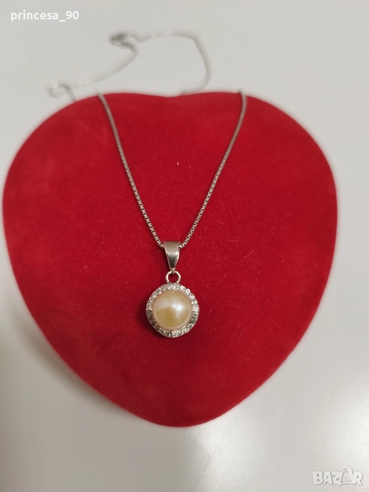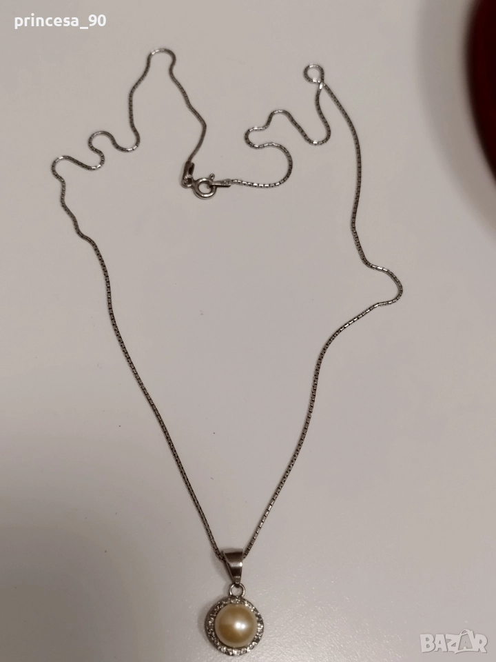 Сребърна верижка, висулка с перла, в много добро състояние, цена 20 евро.
