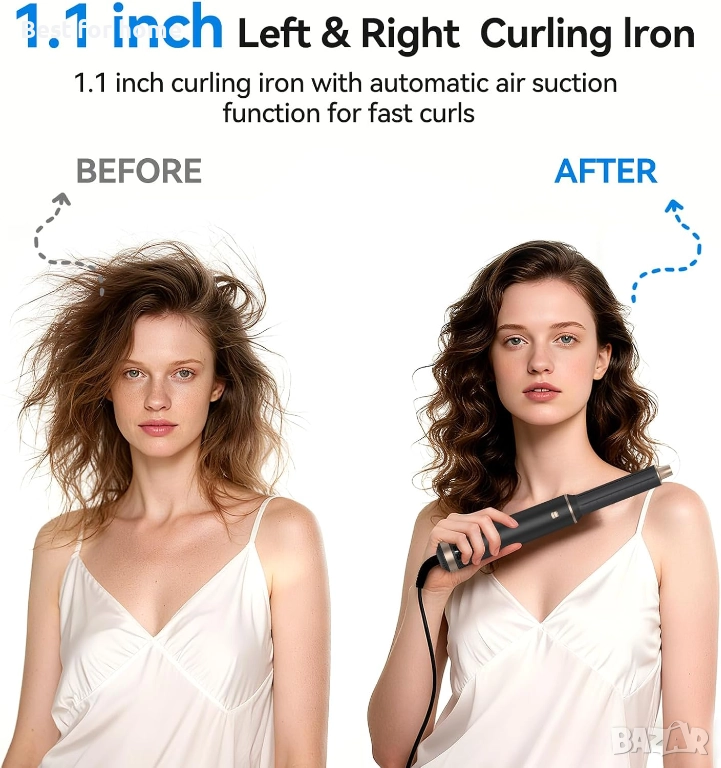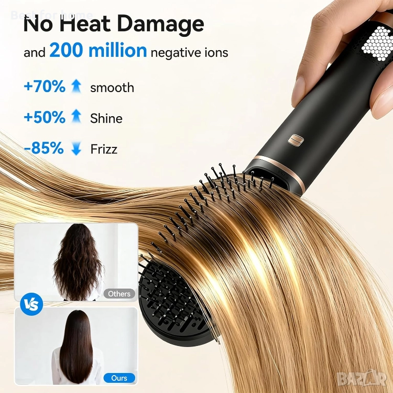 Технология с горещ въздух: Оформя къдриците чрез въздушен поток, което предпазва косъма от изгаряне и запазва блясъка.