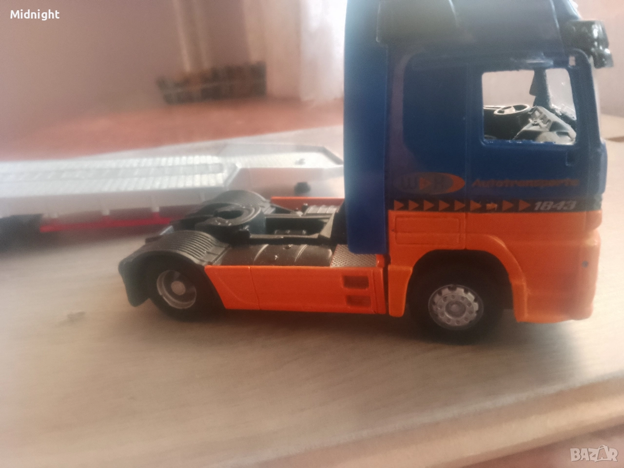 Много красив автовоз Mercedes Actros , производител Maisto,мащаб 1/24 ,състояние много добро.