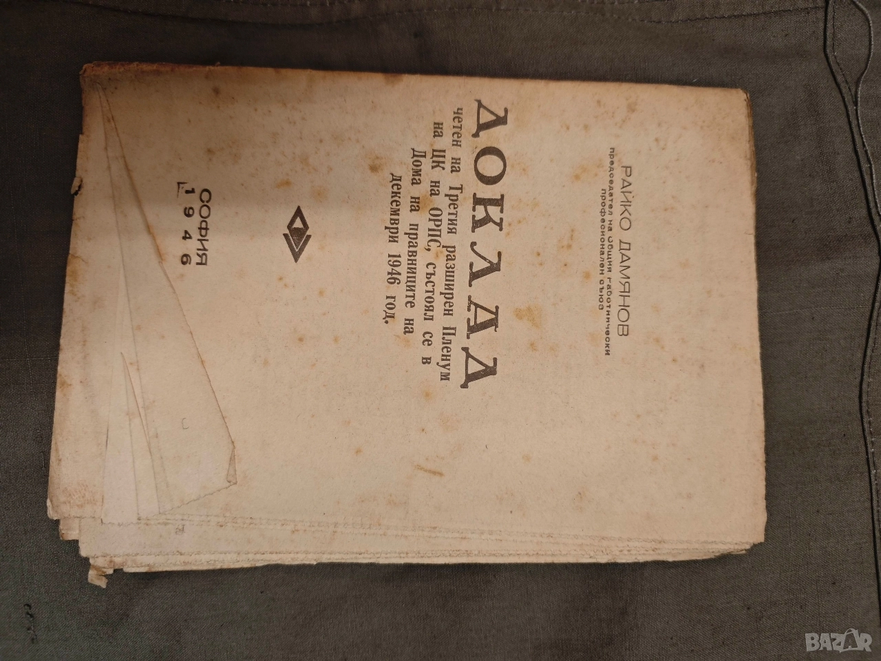 1.Доклад четен на Третия разирен Пленум на Цк На ОРПС 1946 Райко Дамянов