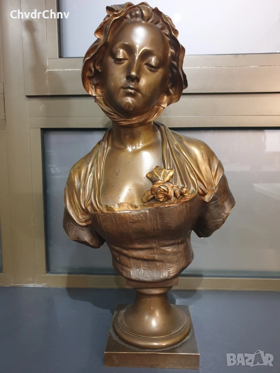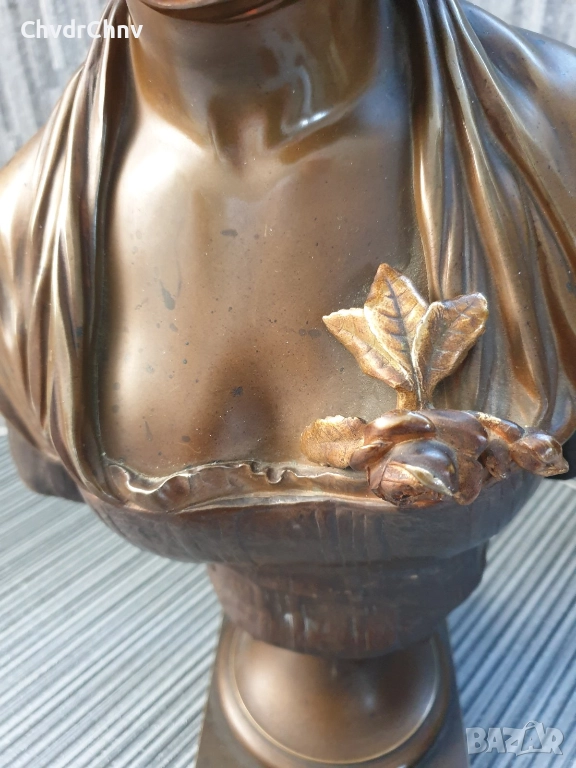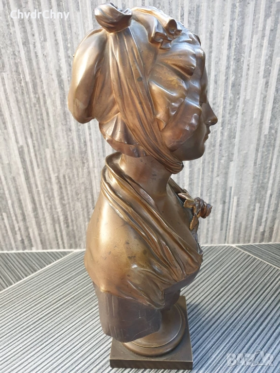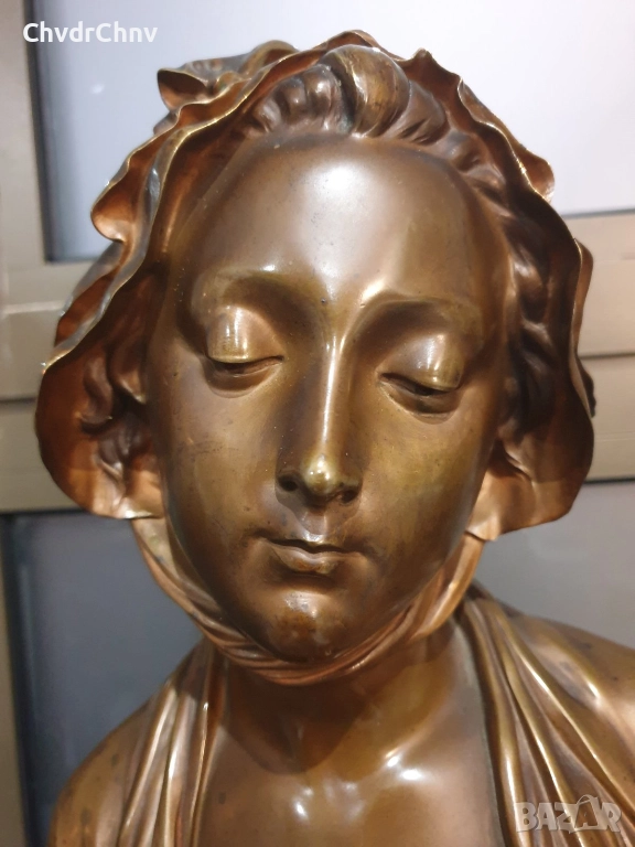 49см-10кг Laurent статуетка-бюст/стара френска бронзова скулптура/фигура на жена-млада дама