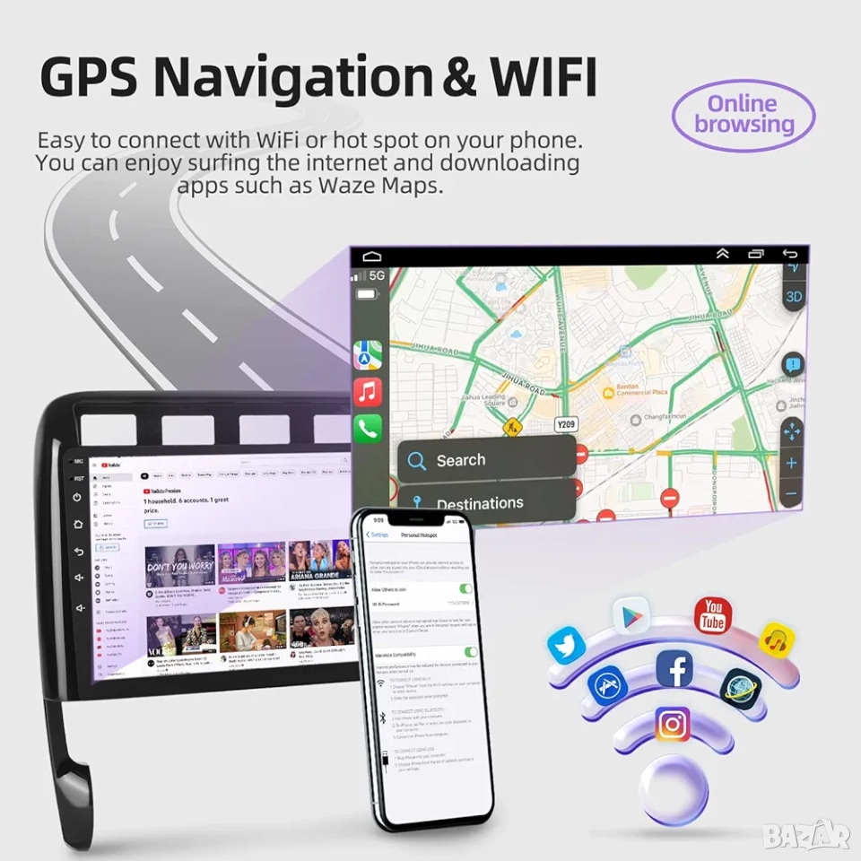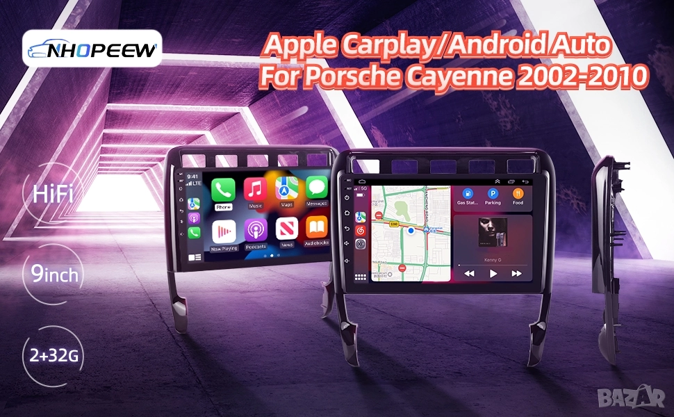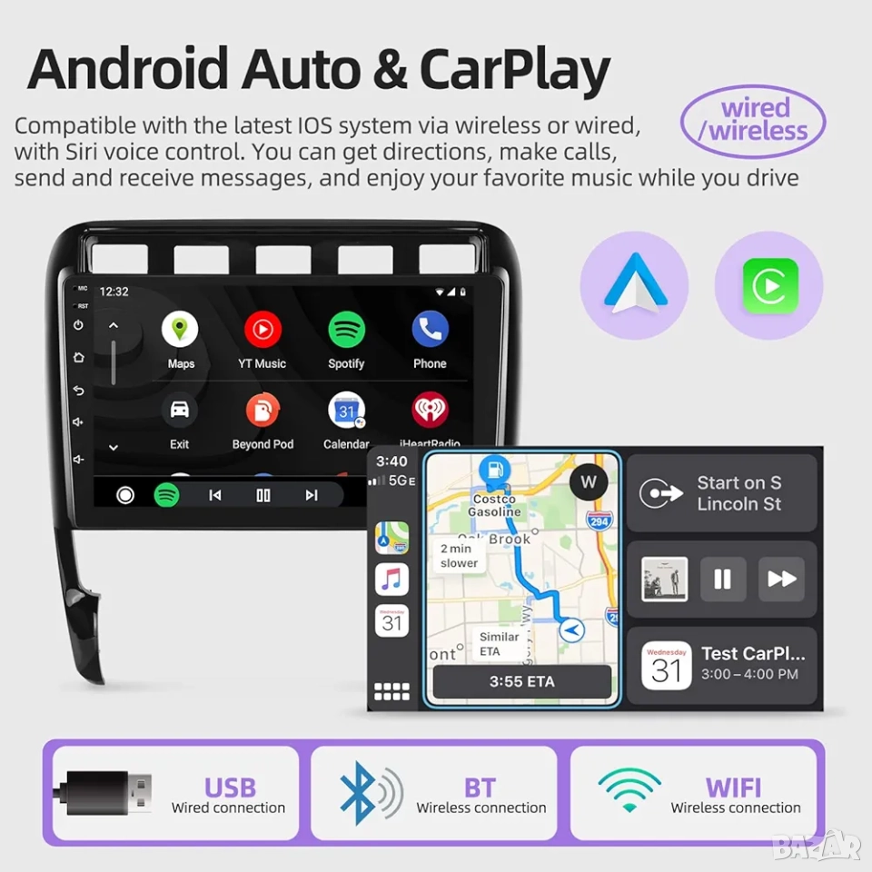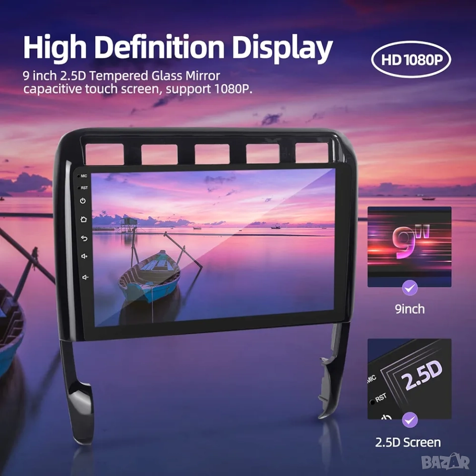 мултимедия за кола, Android 13, Porsche Cayenne 2002-2010, авто радио, Apple CarPlay, Android Auto, GPS навигация, 9 инча дисплей, камера за задно виждане, Bluetooth handsfree, тунинг Porsche, Car Audio Cayenne.