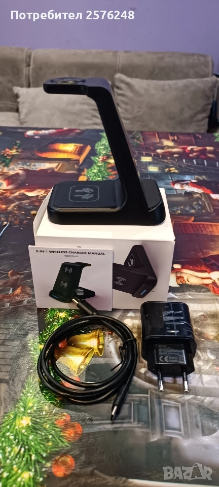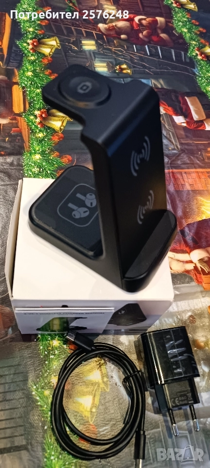 Чисто нова зарядна станция за 3 в 1 за телефон, слушалки и часовник.Станцията е комплект с адаптер и кабел.За повече инфо на лс или на посочения номер