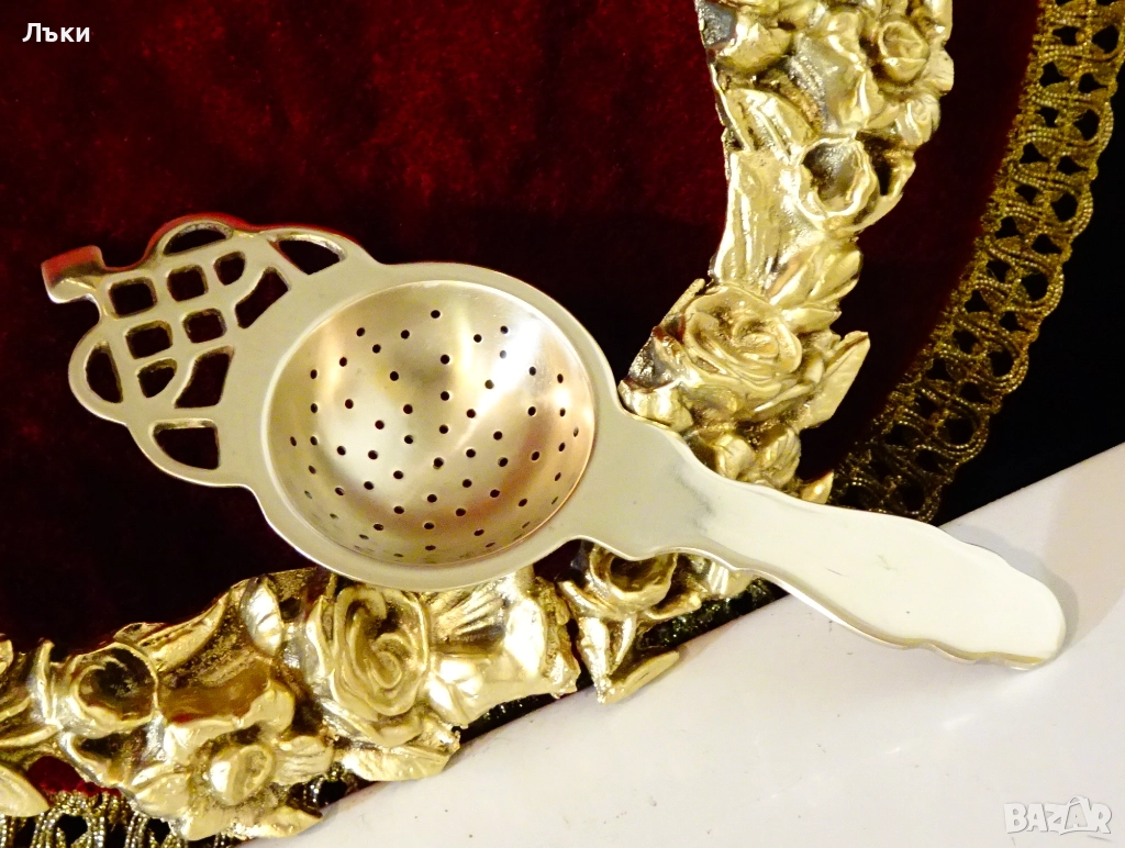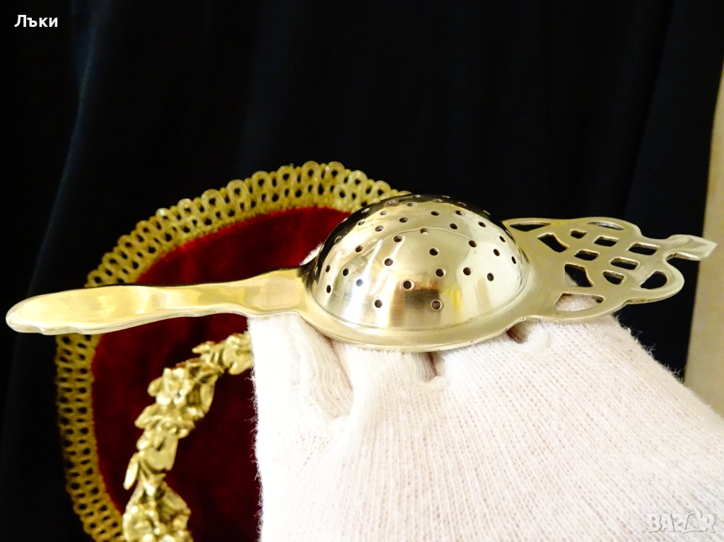 Стара цедка за чай,майсторска ръчна изработка от масивен