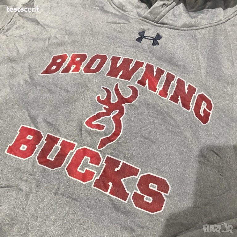 Продавам оригинален Under Armour спортен суичър тип pullover с качулка, модел “Browning Bucks”, размер XL, цвят сив. Подходящ за ежедневие, спорт, разходки – удобен и топъл.