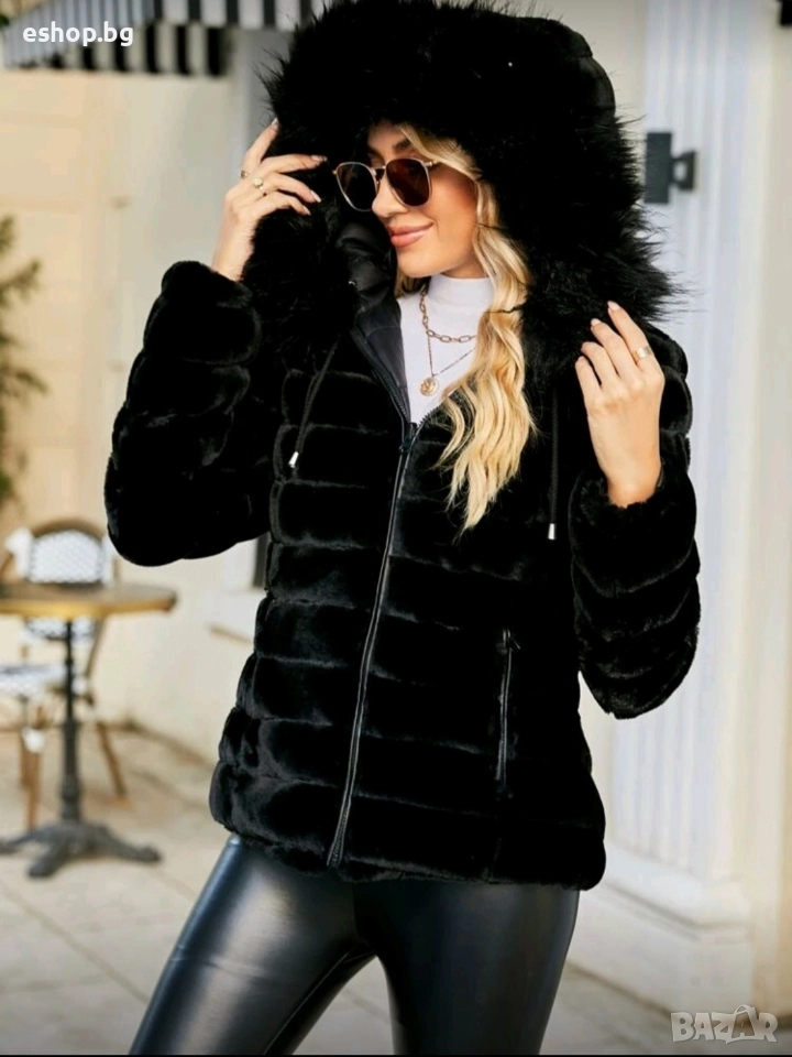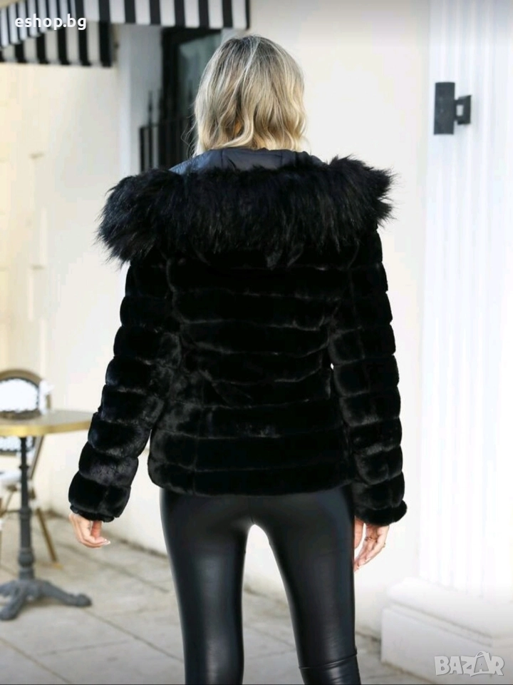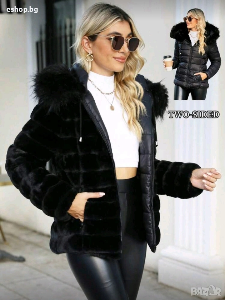 Дамско двулицево пухено яке с качулка → Обява 52967993
