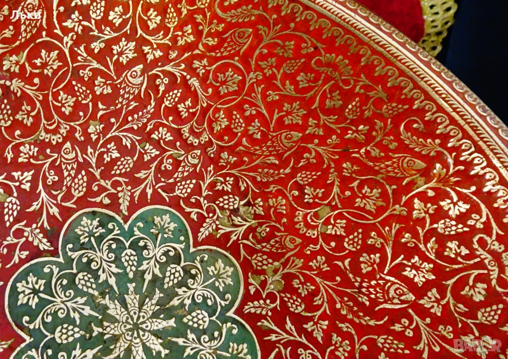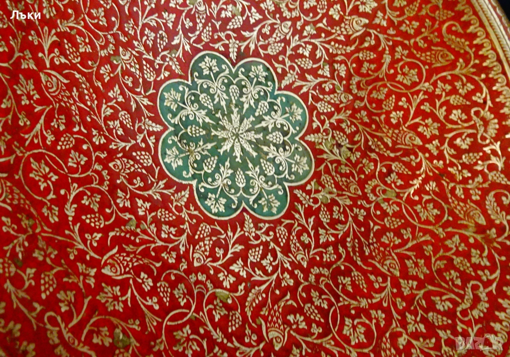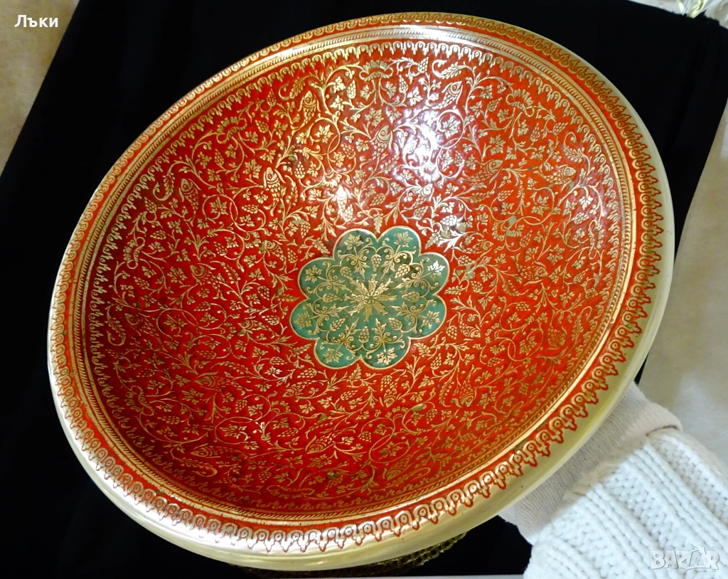 ярък фон от цветен клетъчен емайл.От вън е релефно гравирана с красиви флорални