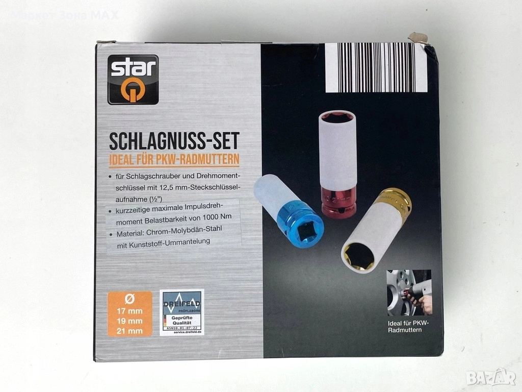 Приложение: Подходящи за ударни и динамометрични ключове с 12,5 мм (½") държач;