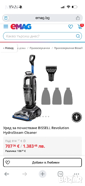 BISSELL Revolution HydroSteam дълбоко почистване на килими , мокети , петна