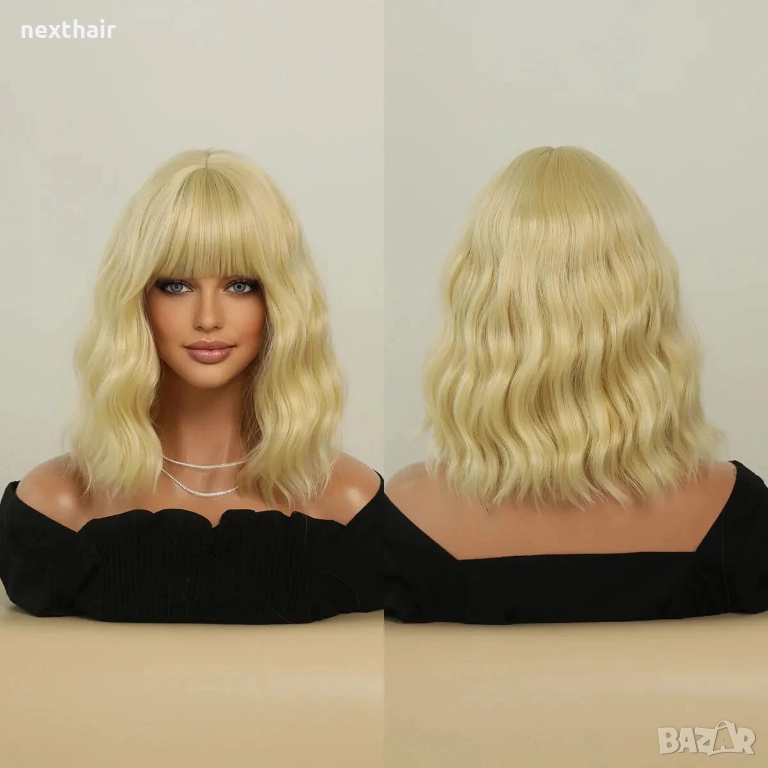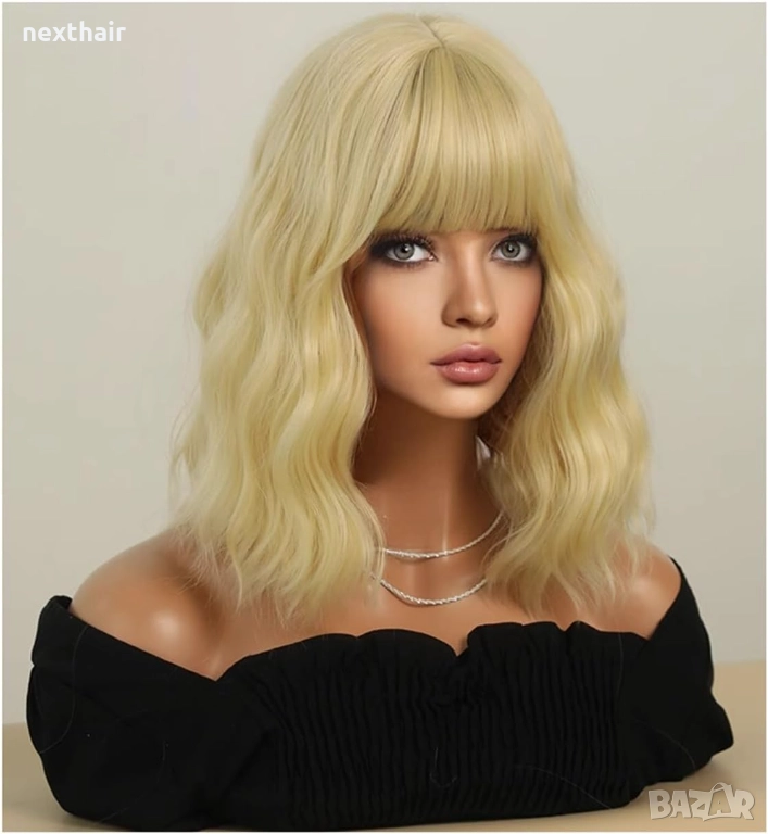 Добавете стил, обем и женственост към визията си с тази елегантна вълнообразна руса перука с дължина 40 см и мек бретон. Изработена от висококачествени термоустойчиви синтетични фибри, тя изглежда естествено, запазва формата си и е лесна за поддръжка. Лекият и удобен вътрешен вариант осигурява стабилно прилягане през целия ден, а деликатните вълни придават модерна и ефирна визия - подходяща както за ежедневие, така и за специални поводи.
