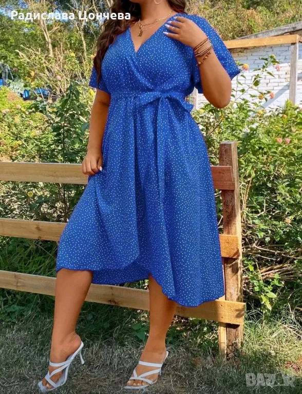 Красива рокля в кралско /турско/ синьо, с коланче в талията, подчертава бюста