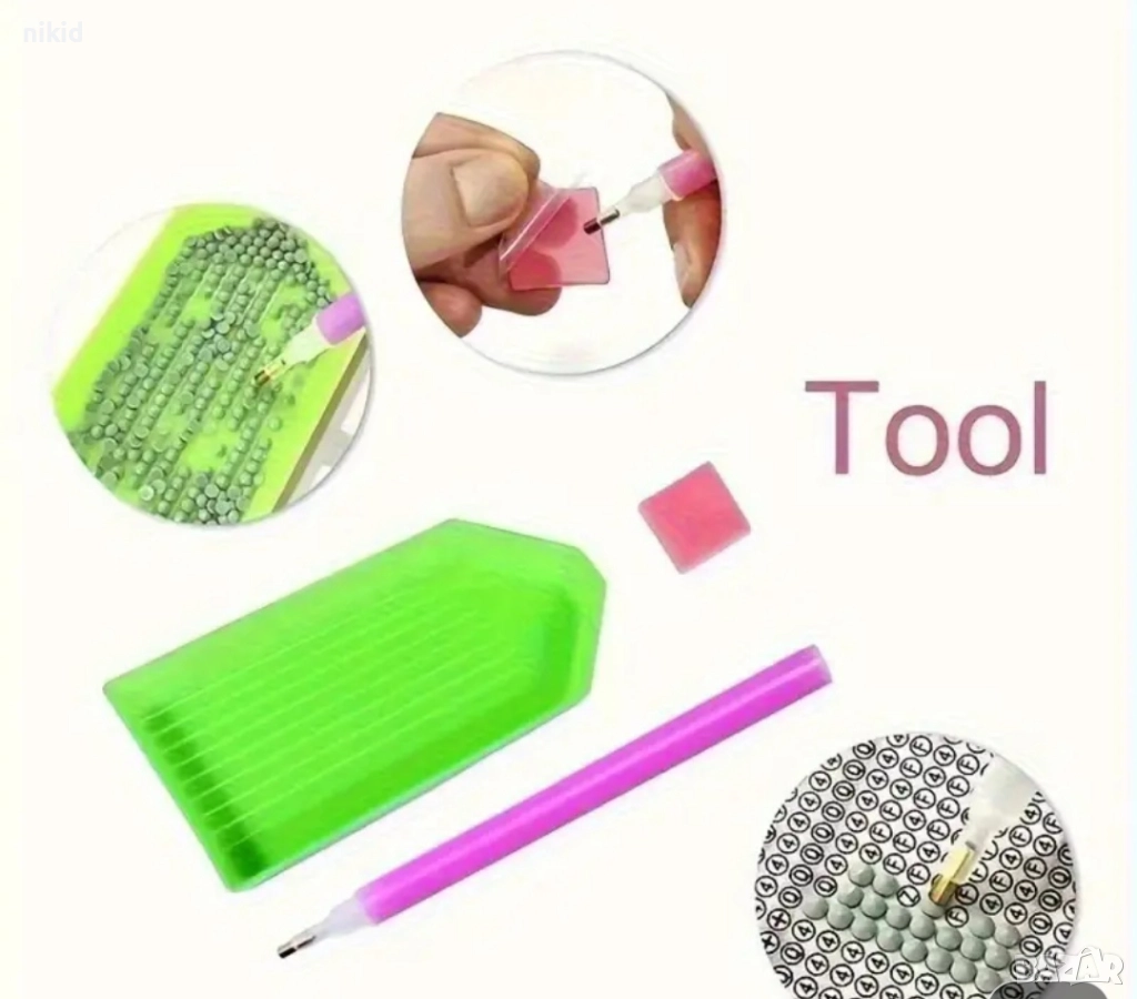 вкл. 16 цвята камъчета,инструмент за захващането им+ лепка за инструмента