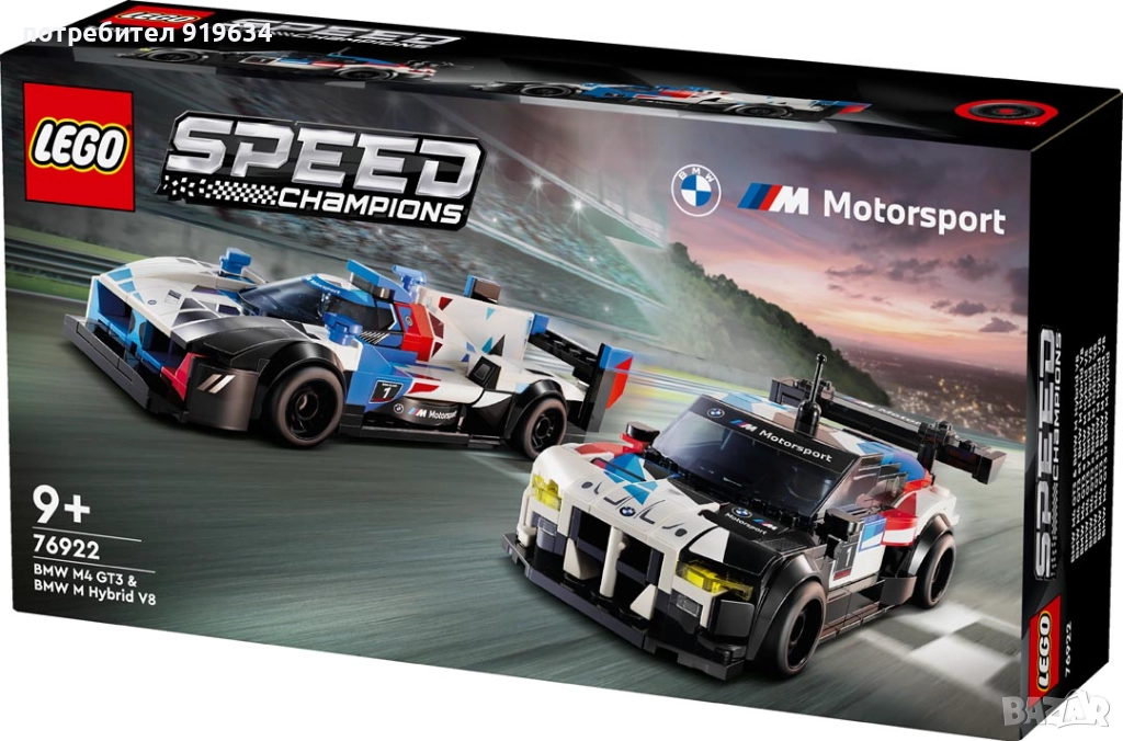 Момчета и момичета на възраст над 9 години ще се радват да притежават фантастичния двоен пакет с превозни средства LEGO® Speed Champions BMW за конструиране: M4 GT3 и M Hybrid V8 (76922). Строителният комплект с коли LEGO с 2 детайлни модела е перфектен както за деца, така и за възрастни колекционери за построяване, показване и организиране на невероятни състезания. Моделите реплика на BMW M4 GT3 и BMW M Hybrid V8 включват автентични детайли на дизайна от версиите в реалния живот, включително ауспуси, дифузьор, задни спойлери, външният дизайн на BMW M Motorsport и интериорни елементи. Състезателните коли се предоставят с подвижен покрив и минифигура на пилот, която децата да поставят вътре за състезателен екшън. Комплектите Speed Champions позволяват на децата и запалените фенове на автомобили да построят реплики на някои от най-емблематичните превозни средства в света. Те с удоволствие ще създават висококачествени модели от тухлички LEGO, включващи отличителни детайли. Всяка кола може да бъде създадена с приложението LEGO Builder, което направлява вас и вашето дете в едно лесно и интуитивно строително приключение.