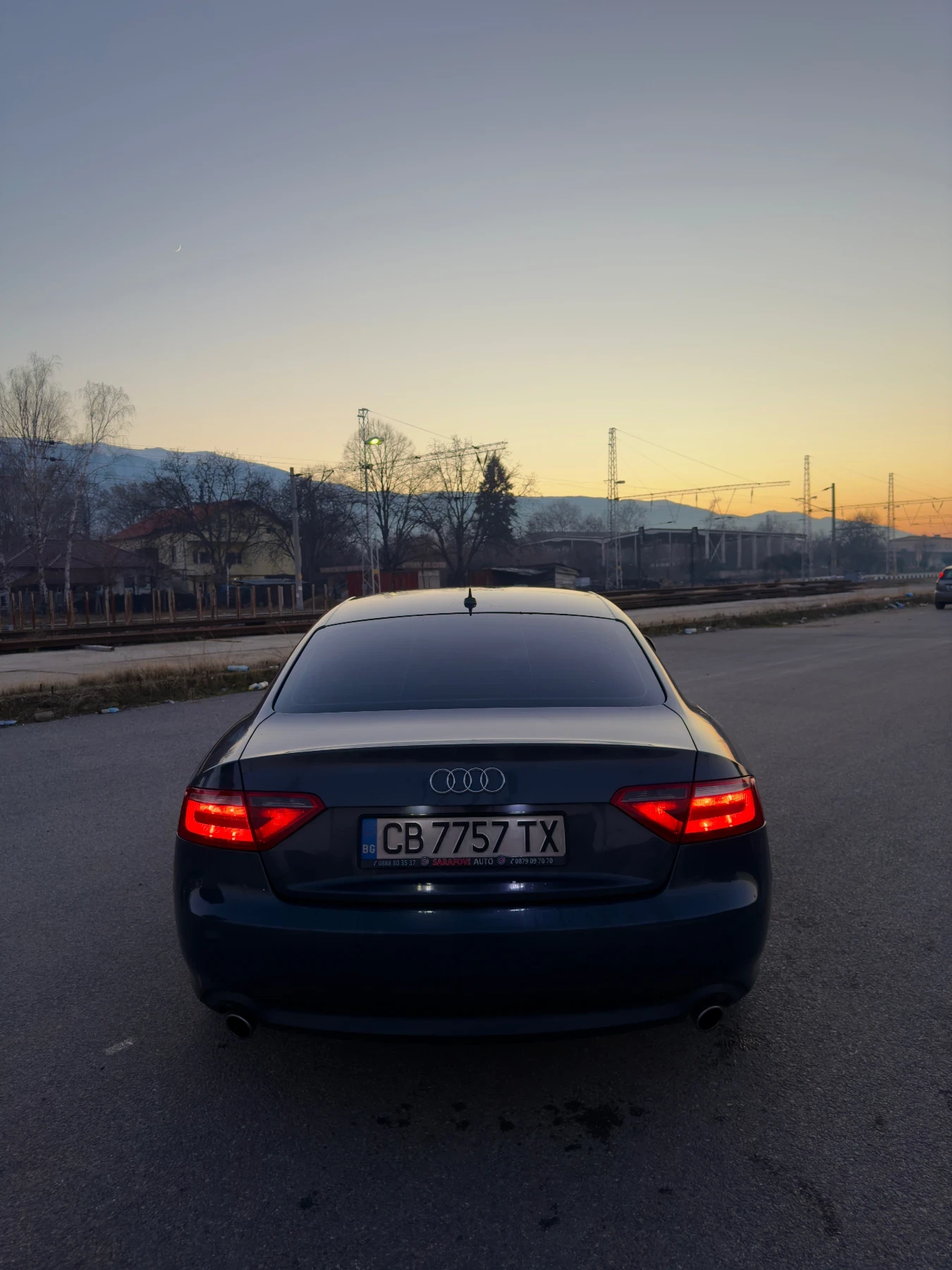 Audi A5 2. 7 TDI, 2008 г. 8-степенна автоматична трансмисия * 2. 7 литров V6 дизелов двигател * 8-степенна автоматична трансмисия * Стилна външност и луксозен интериор * Кожен салон, климатик, навигация * Подгрев на седалките. * Мултимедийна система, парктроници * Круиз контрол, ESP, ел. регулиране на седалките * Отлична икономия на гориво и динамика Автомобилът е в много добро състояние, с редовно обслужване и без забележки. Перфектен за динамично шофиране и комфортни пътувания. Колата идва с чисто нови зимни гуми. Последно обслужена преди 8000 километра. Възможен Бартер!