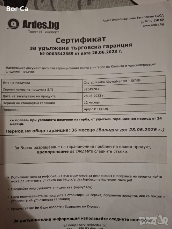 Тротинетката е карана много малко и е още в гаранция, както се вижда от последната снимка.
