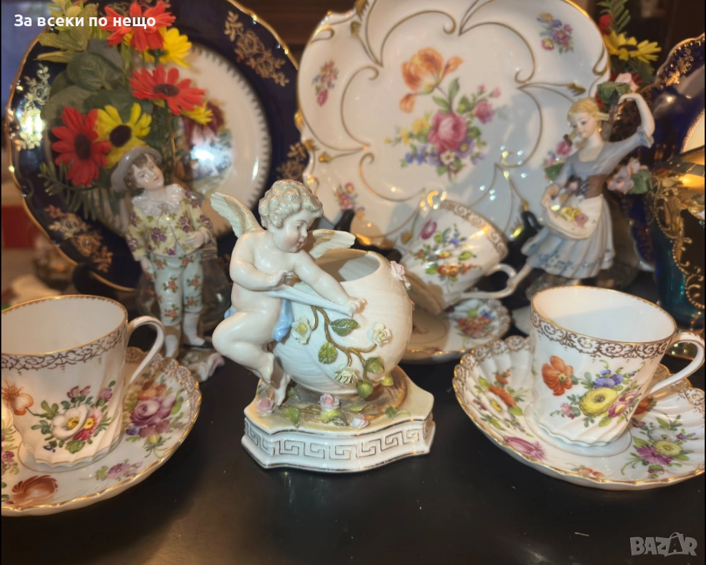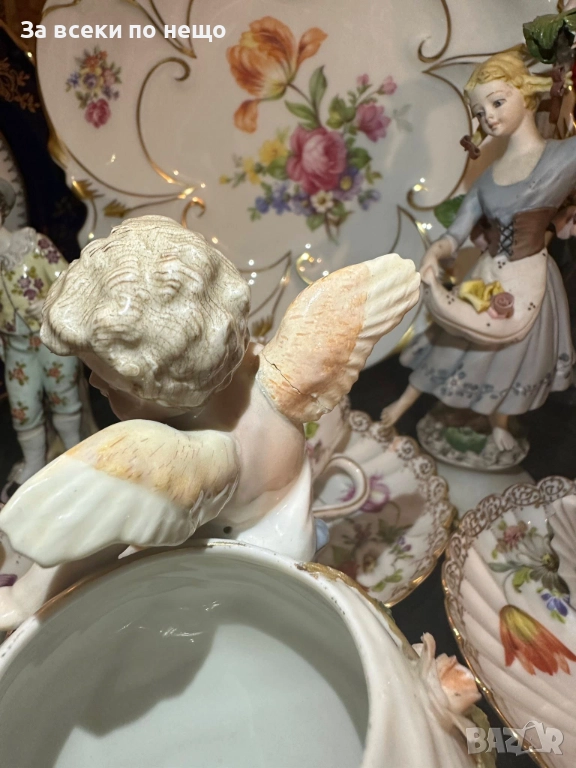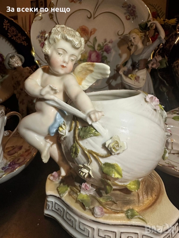 Sitzendorf Germany Circa 1904 - “Вазата с херувима” уникално красива ваза с изящно ангелче, великолепие на изработката и излъчването, класна и рядко намираща се продукция от този бранд и тези времена, с реставрация на едното крило, размери 16/14 см, определено изящна арт немска продукция с над 100 годишна история, само за колекционери.