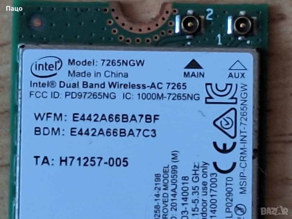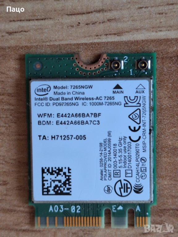 Wifi Карта Intel Wireless-N 7265NGW 802, снимка 1 - Лаптоп аксесоари - 52970175 Wifi Карта Intel Wireless-N 7265NGW 802, снимка 2 - Лаптоп аксесоари - 52970175 Wifi Карта Intel Wireless-N 7265NGW 802, снимка 3 - Лаптоп аксесоари - 52970175 Wifi Карта Intel Wireless-N 7265NGW 802, снимка 4 - Лаптоп аксесоари - 52970175 Wifi Карта Intel Wireless-N 7265NGW 802, снимка 5 - Лаптоп аксесоари - 52970175 1/5