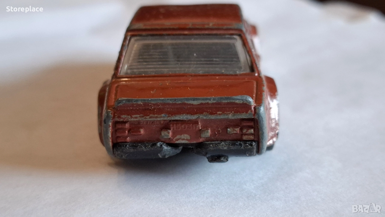 Автентична метална количка Matchbox, модел Fiat Abarth (131), произведена в България през 80-те години по лиценз в завод „Мир“. Маркировка: Ясно четлив надпис "MADE IN BULGARIA" на дъното. Състояние: Видими следи от игра и износване по боята, характерни за годините си, но без липсващи части или счупвания по стъклата. Цвят: Тъмночервено (керемидено) купе със сив интериор. Предметът е изключително подходящ за колекционери на българската серия Matchbox. Изпращам със Еконт с преглед. Колелцата се въртят без проблем! Рядък цвят на количката.