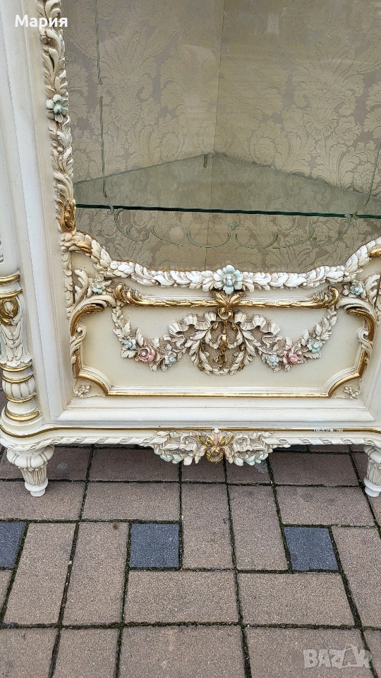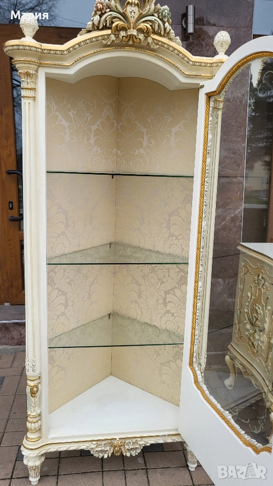 #✨ Лукс, елегантност и стил – бъди сред първите, които ще ги притежават! Започваме празничното пътешествие с бестселъри. 💐С нашите мебели и аксесоари може да създадете специална атмосфера във вашият дом или офис. 💐Днес ще ви предложим само най-доброто Италианска барокова витрина. Марка Silik. Ръчна изработка. Размер; Ъгъл 60/60 ,лице87см,вис 202см Цена 1850€/3522лв