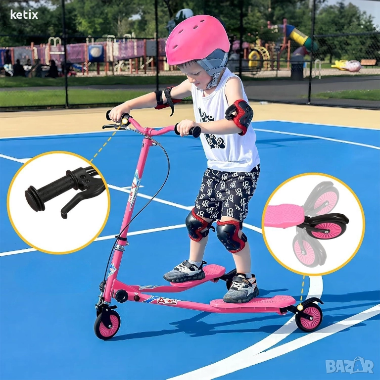 ИЗГРАЖДАНЕ НА СИЛА И БАЛАНС - Стабилност чрез използването на три полиуретанови колела. Идеална за изграждане на сила на краката, координация на тялото и баланс. Тротинетката с 3 колела предотвратява падането на детето ви. Предната ръчна спирачка осигурява по-добър контрол и безопасност, карайки родителите да се чувстват облекчени, без да се тревожат за детето си.
