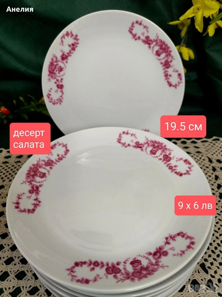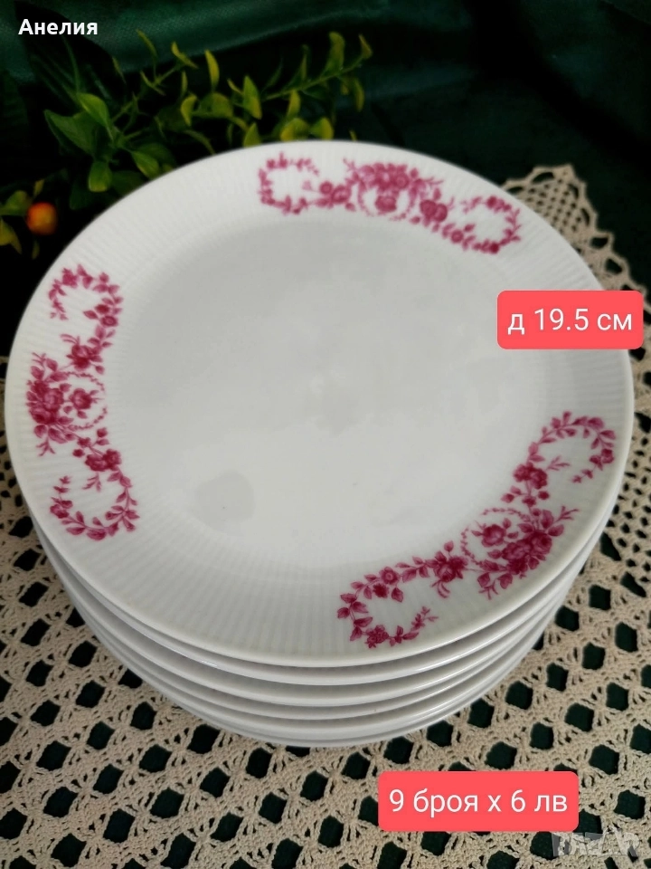 🌸9 чинии за десерт (салата) 19.5 см х 6 лв/3.07€ много леки няколко чертички , виждат се под ъгъл,не са от прибори