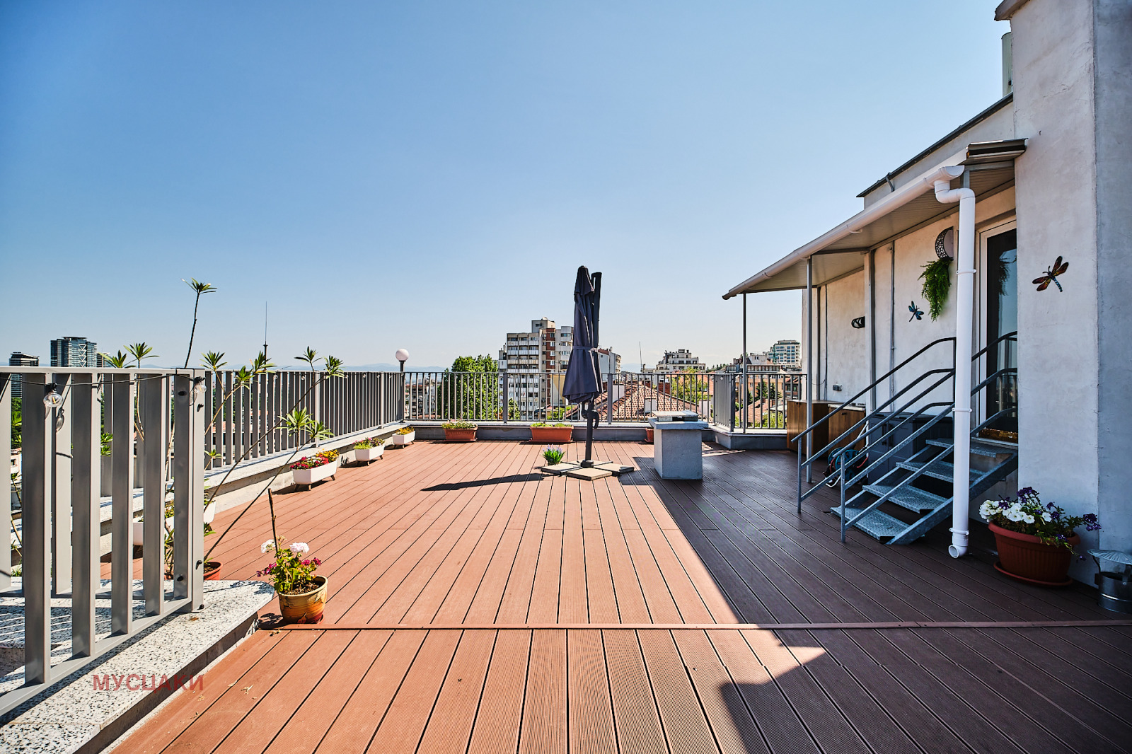 Към имота има мазе от 10 кв.м, а също така и възможност за паркиране във вътрешен двор. Бонус е споделената панорамна тераса на покрива с прекрасна гледка към Витоша.