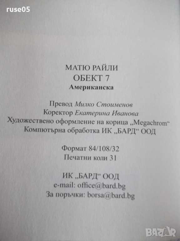 Книга "Обект 7 - Матю Райли" - 496 стр. → Обява 52971557