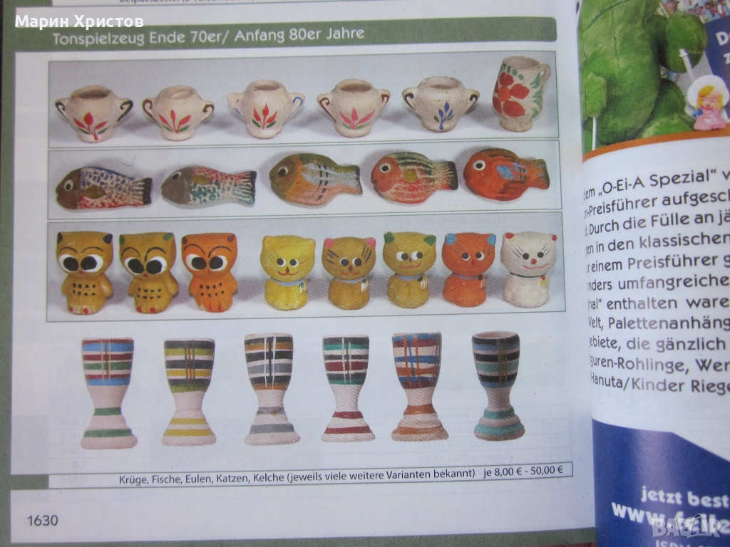 Продавам колекция 10бр стари глинени киндер играчки от края на 70те началото на 80те години на миналия век ръчно изработени и оцветени вървят с кутийката..