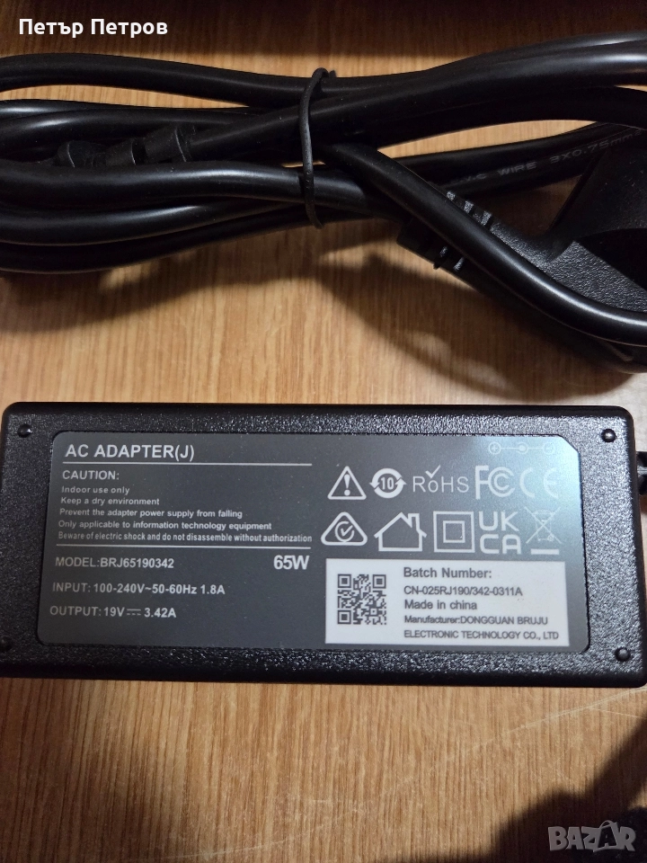 Зарядно за лаптоп 65W 19V 3.42A, съвместимо с Acer 15 14 13 11 → Обява 52971761