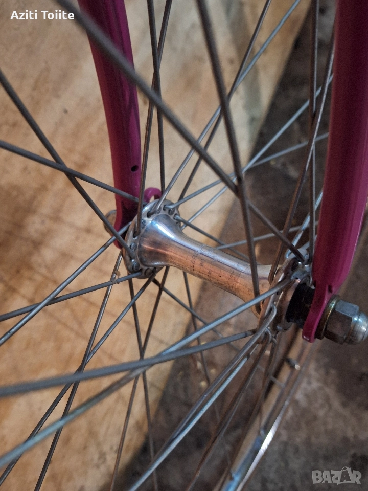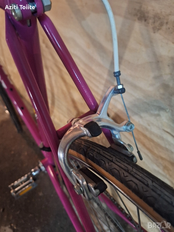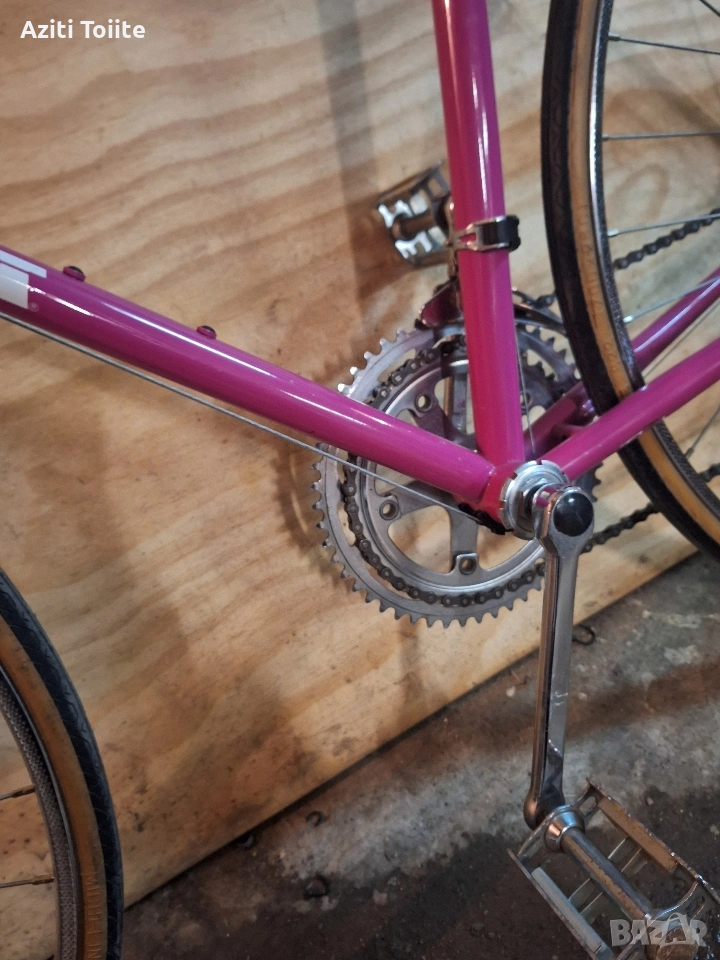 Рамката е изработена от HLE(тръби от mangaloi) с размери 53/53 см.Година на производство според мен 1970-71.Състоянието е перфектно близко до ново,включително и гумите.Скорости 2/5 saks huret,капли с главини mailard,гуми michelin select педали liotard,шини rigida superchromix.Оригинален вид в колекционерско състояние,готов и за каране.Това е най ниската цена на,която бих го продал и единствената причина за която съм го пуснал в обява е липсата на място за съхранение.Цената е в промоция.