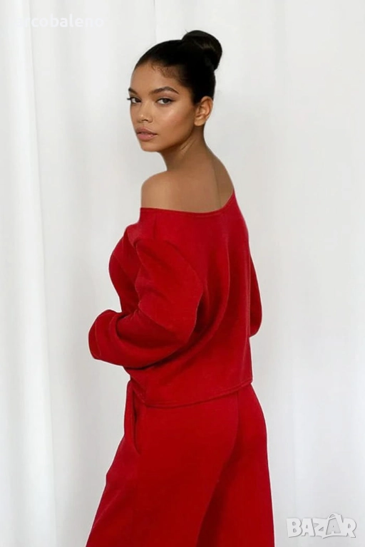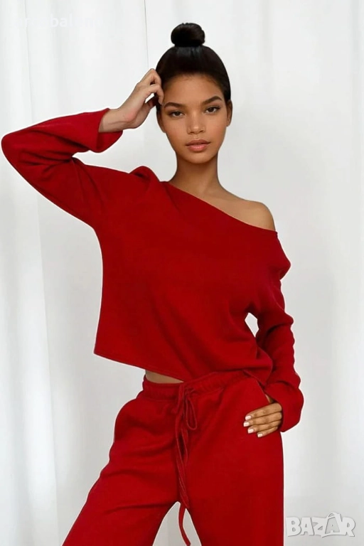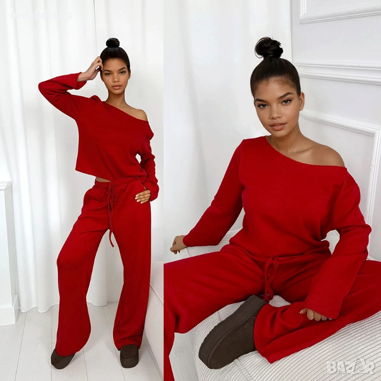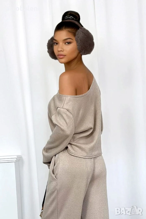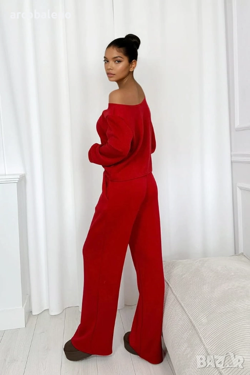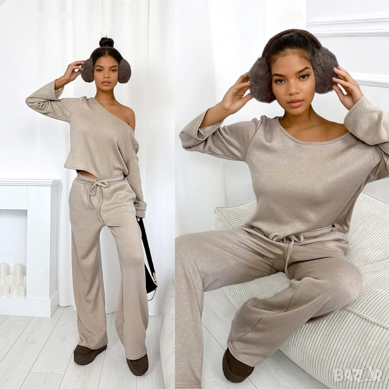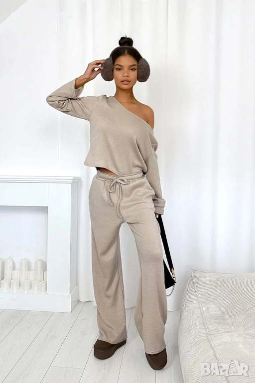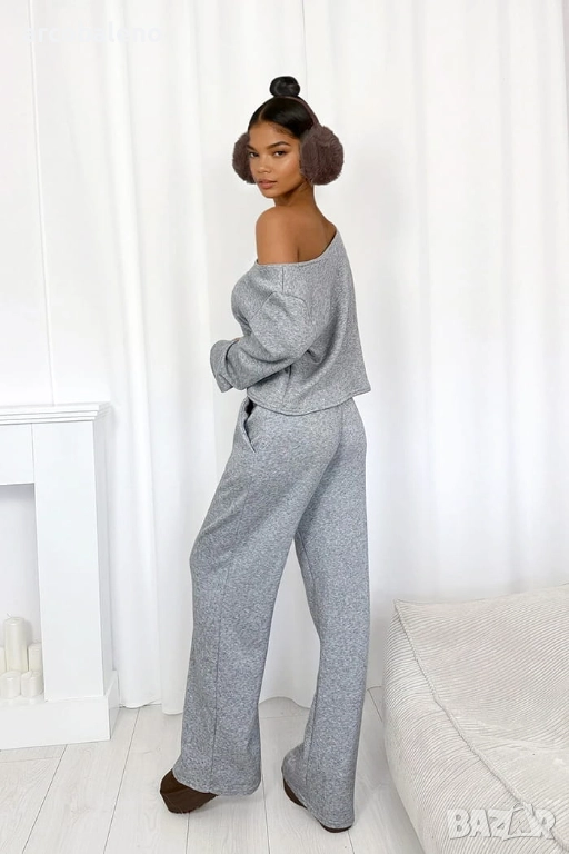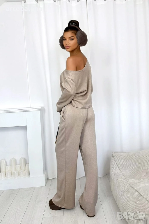 Топъл комплект, който обгръща тялото ви и осигурява пълен комфорт през целия ден. Свободната кройка, съчетана с мека, наподобяваща пуловер материя, създава приятен за носене тоалет, идеален за по-хладните дни.