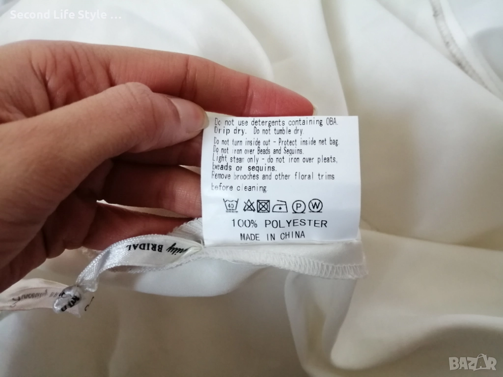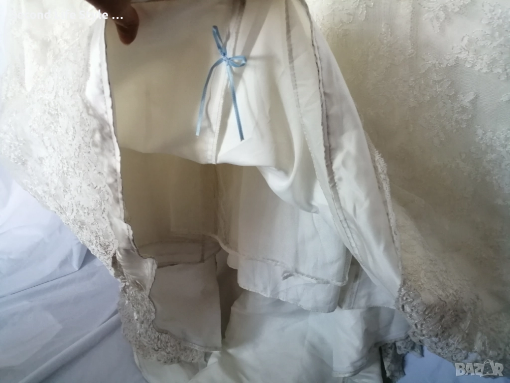 Състояние: Роклята е без забележки, но има нужда от химическо почистване. Долната част, която се влачи по земята, е леко замърсена.