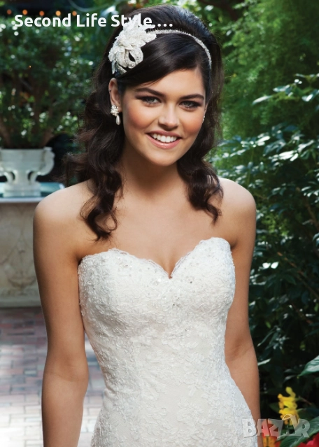 Дизайн: Без ръкави и с разширена пола от талията надолу. Отпред роклята е по-къса, но все пак достига до земята, а задната част е много по-дълга и се влачи красиво по земята.