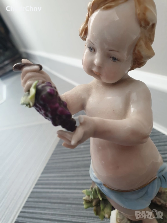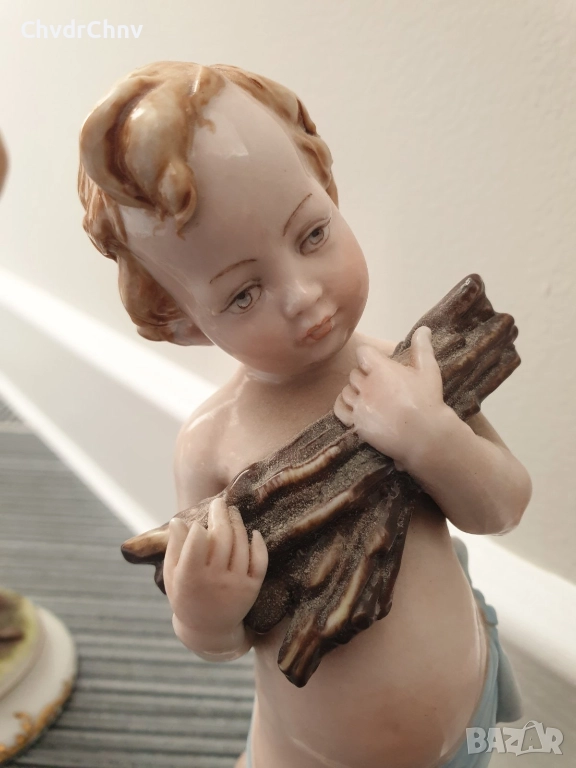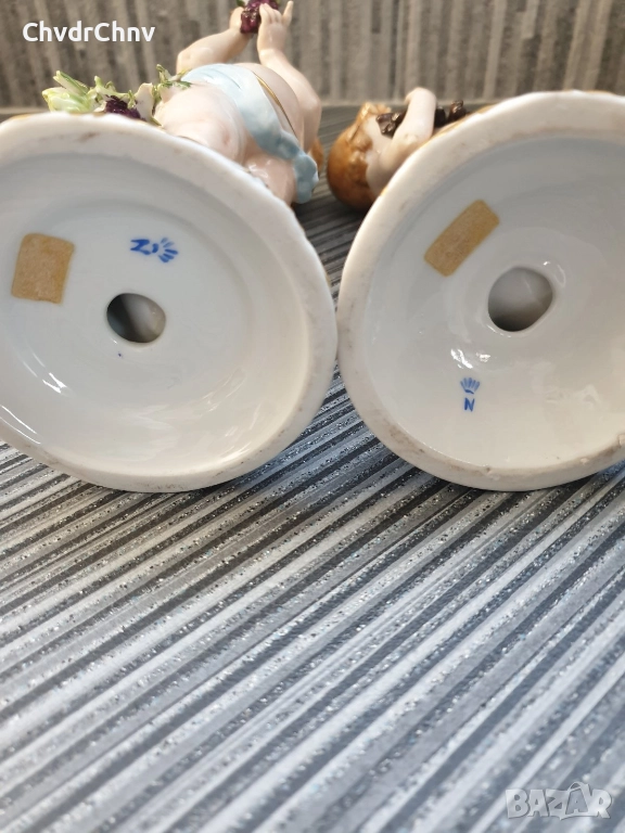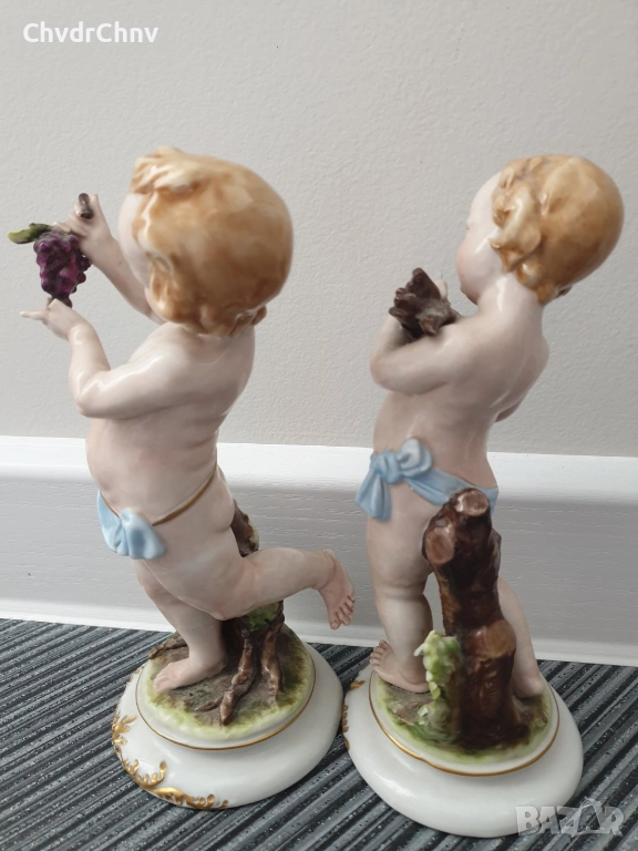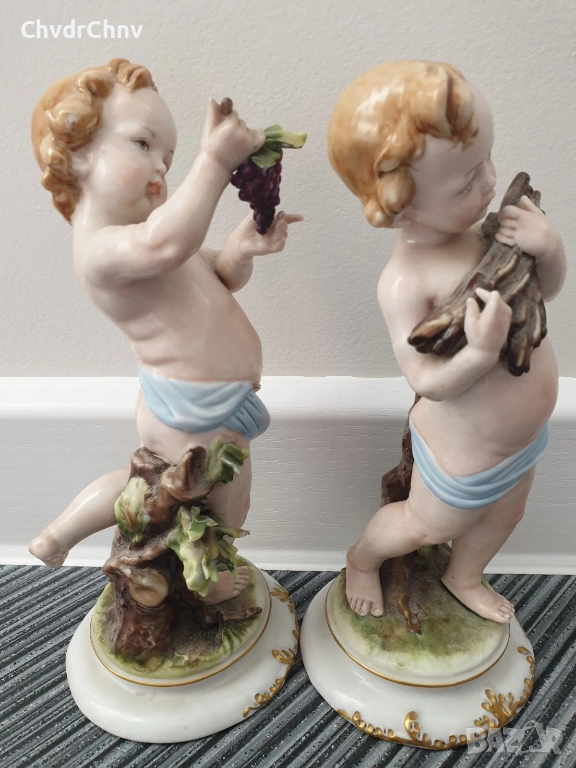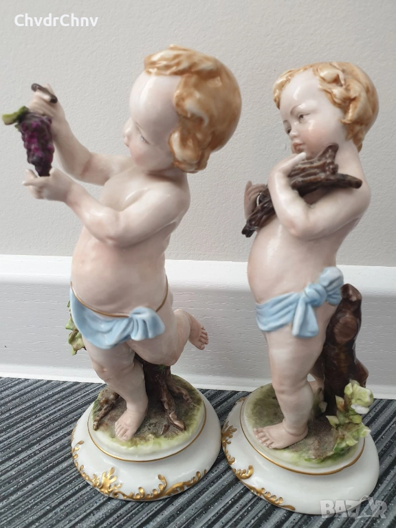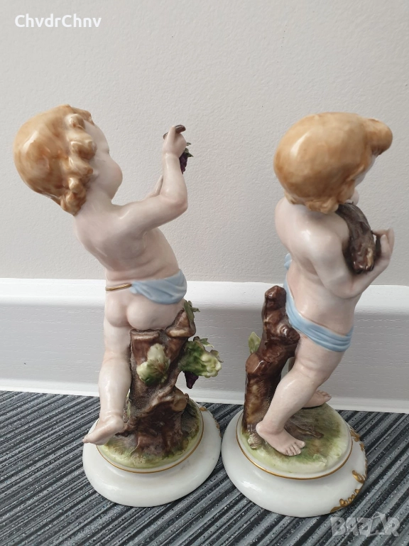 чифт2бр Capodimonte статуетки 20см/стари Каподимонте порцеланови фигури на голи ангели-херувими