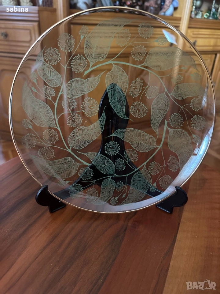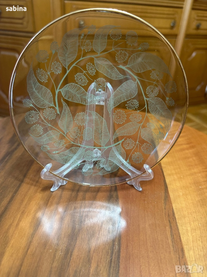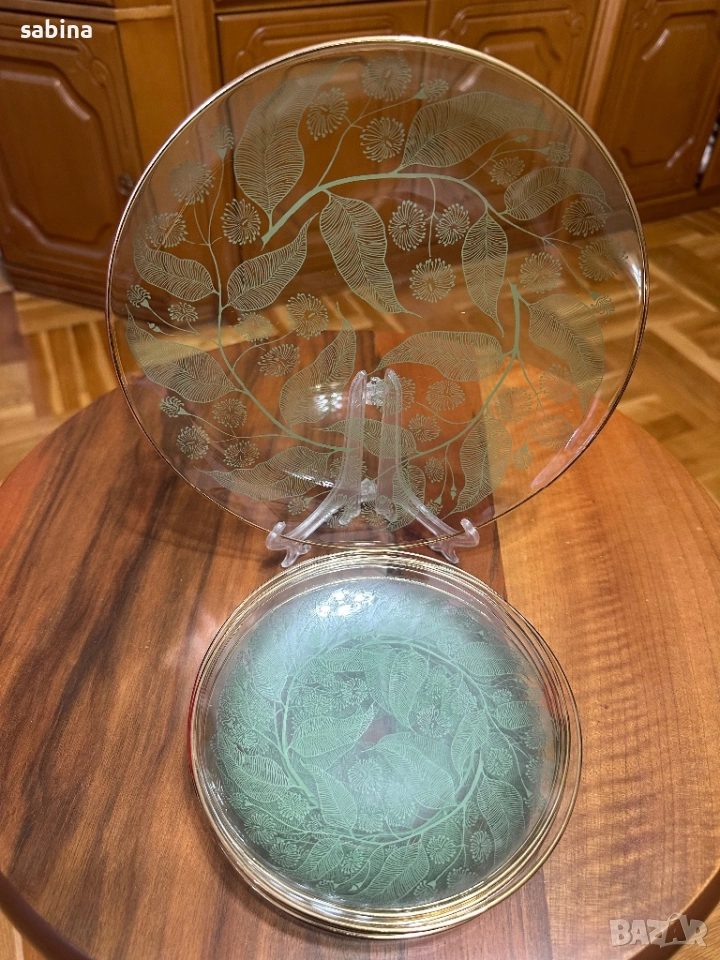 Винтидж чинии с модерна визия! Руски тортен/десертен комплект от 7 броя стъклени чинии, СССР → Обява 52973487