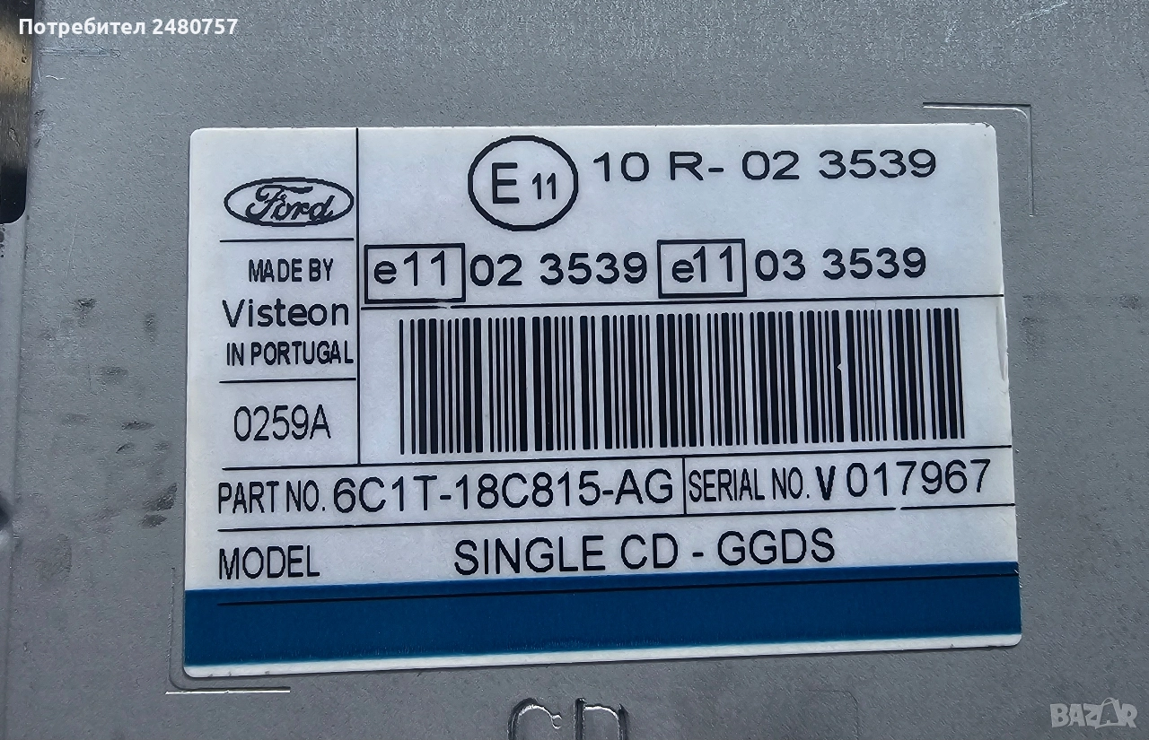 Оригинален касетофон +CD за всички модели ФОРД Транзит.2007 2015г.