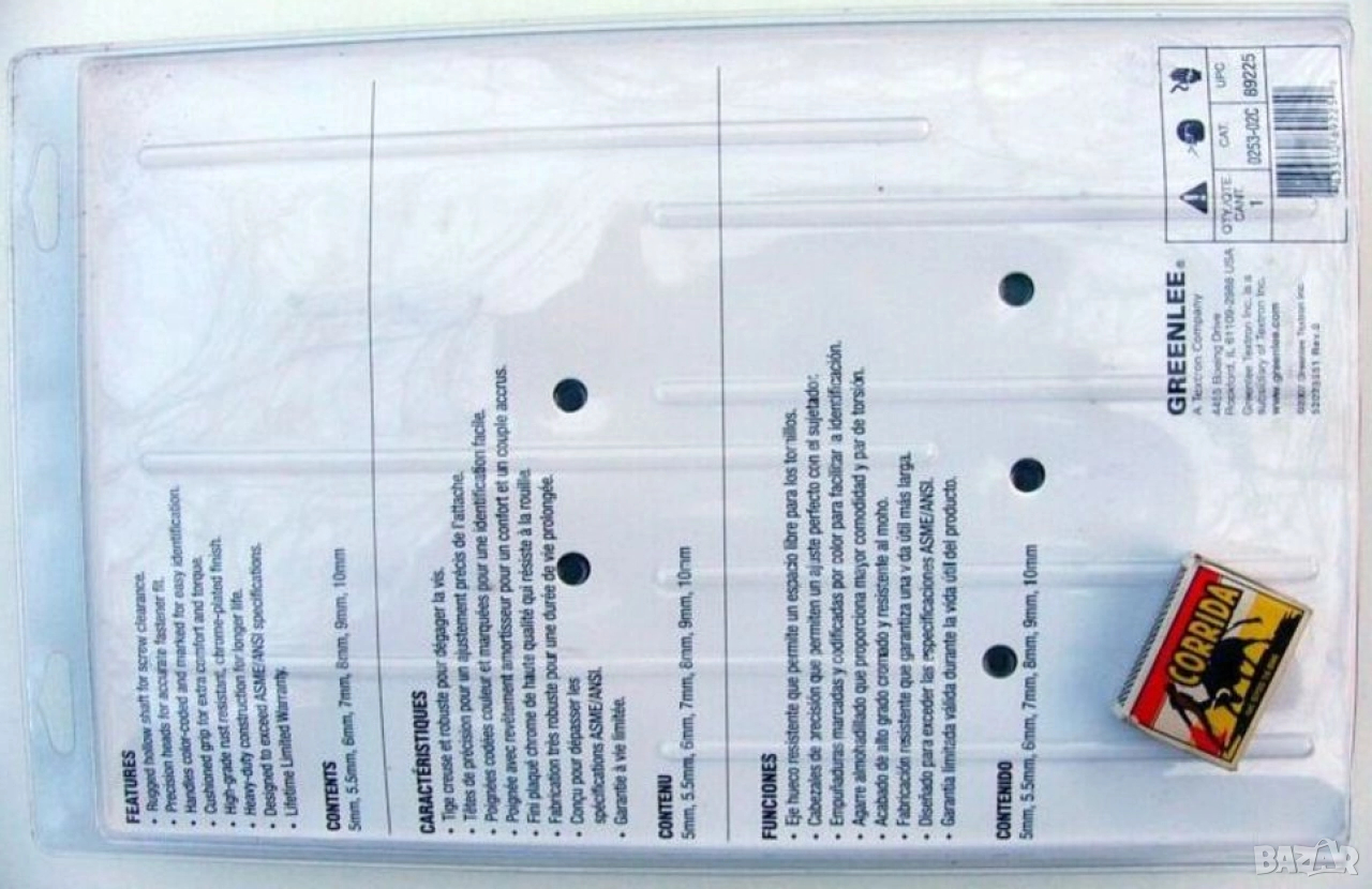 Оригинал GREENLEE К-т Американски ОТВЕРТКИ 5-5,5-6-7-8-9-10 мм Отвертка Глух КЛЮЧ Вложки USA БАРТЕР